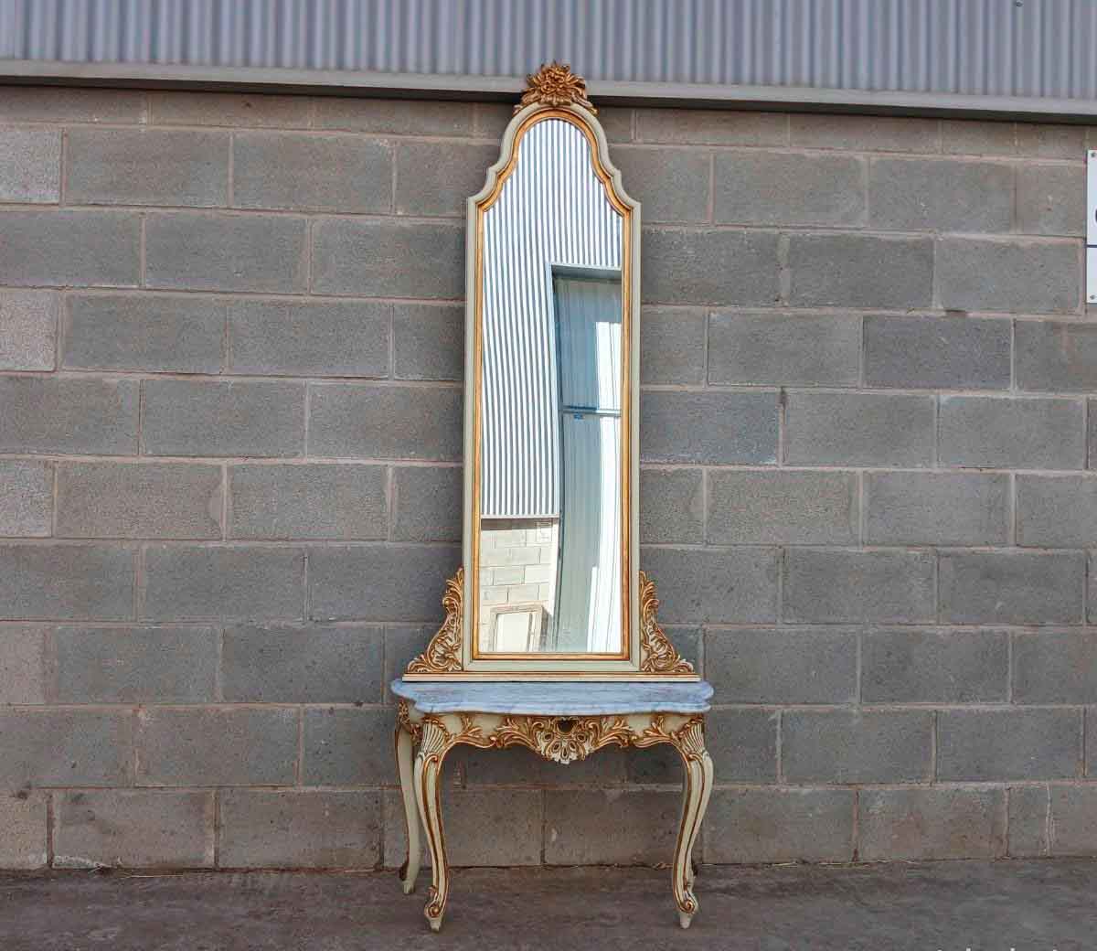 Consola baja con Espejo antiguo estilo Luis XV. Consola antigua, entrada recibidor tocador Isabelino.