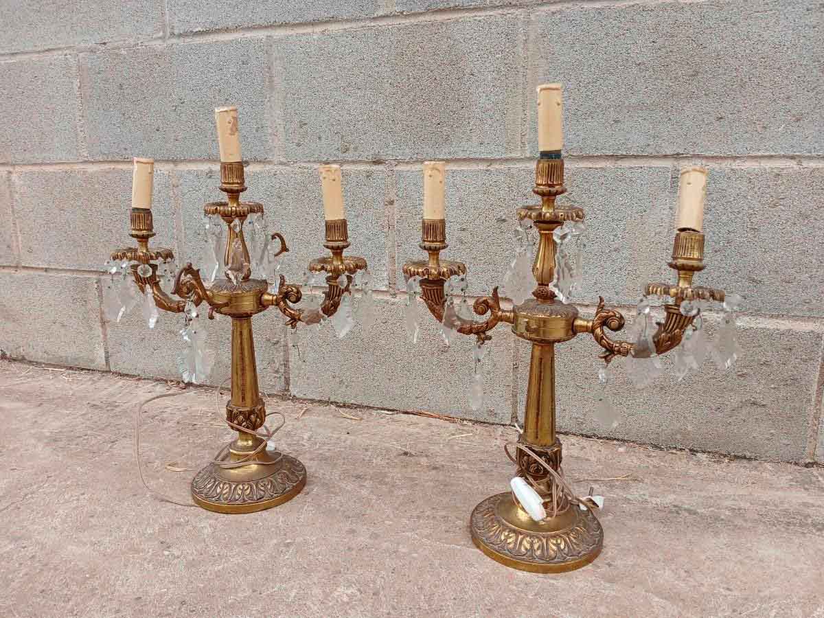 2 Dos Candelabros antiguos bronce estilo Luis XVI. Lámpara sobremesa Candelabro antiguo Francés.