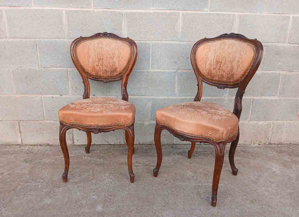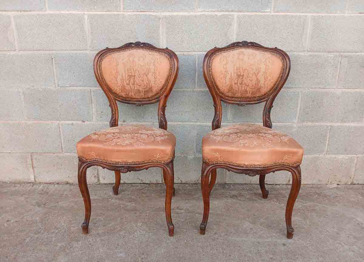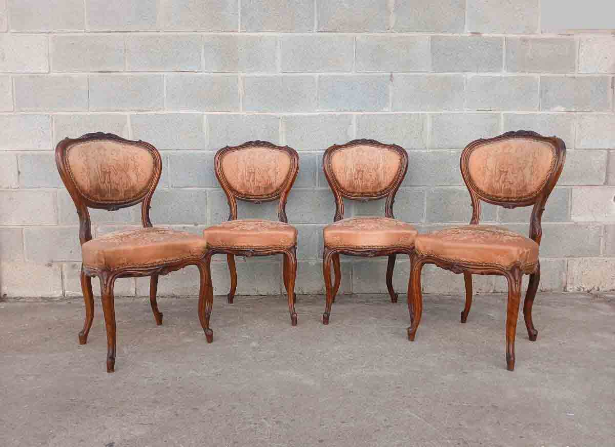 4 Cuatro Sillas antiguas estilo Luis XV. Sillas antiguas estilo Isabelino Barroco. Silla antigua.