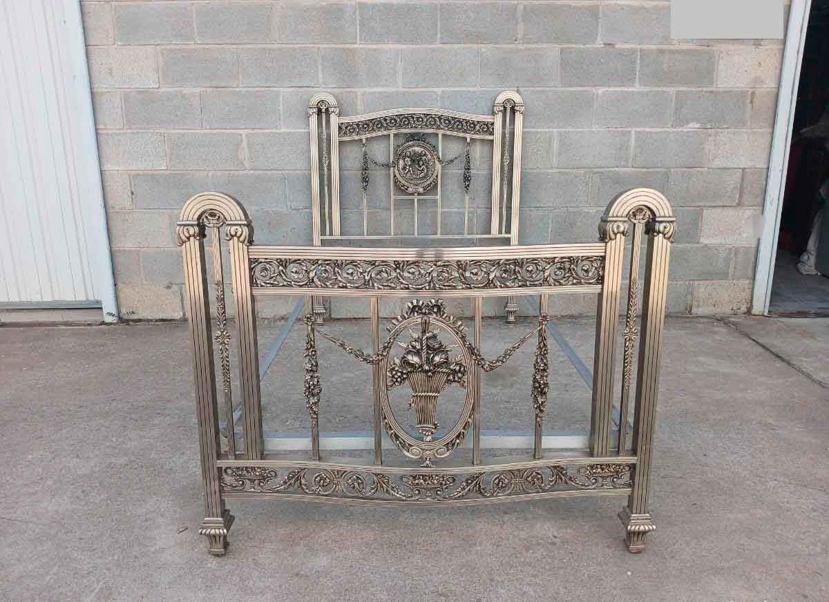 Cama antigua bronce estilo Luis XVI (110,100,90). Cama antigua Neoclásico Modernista Belle Epoque.