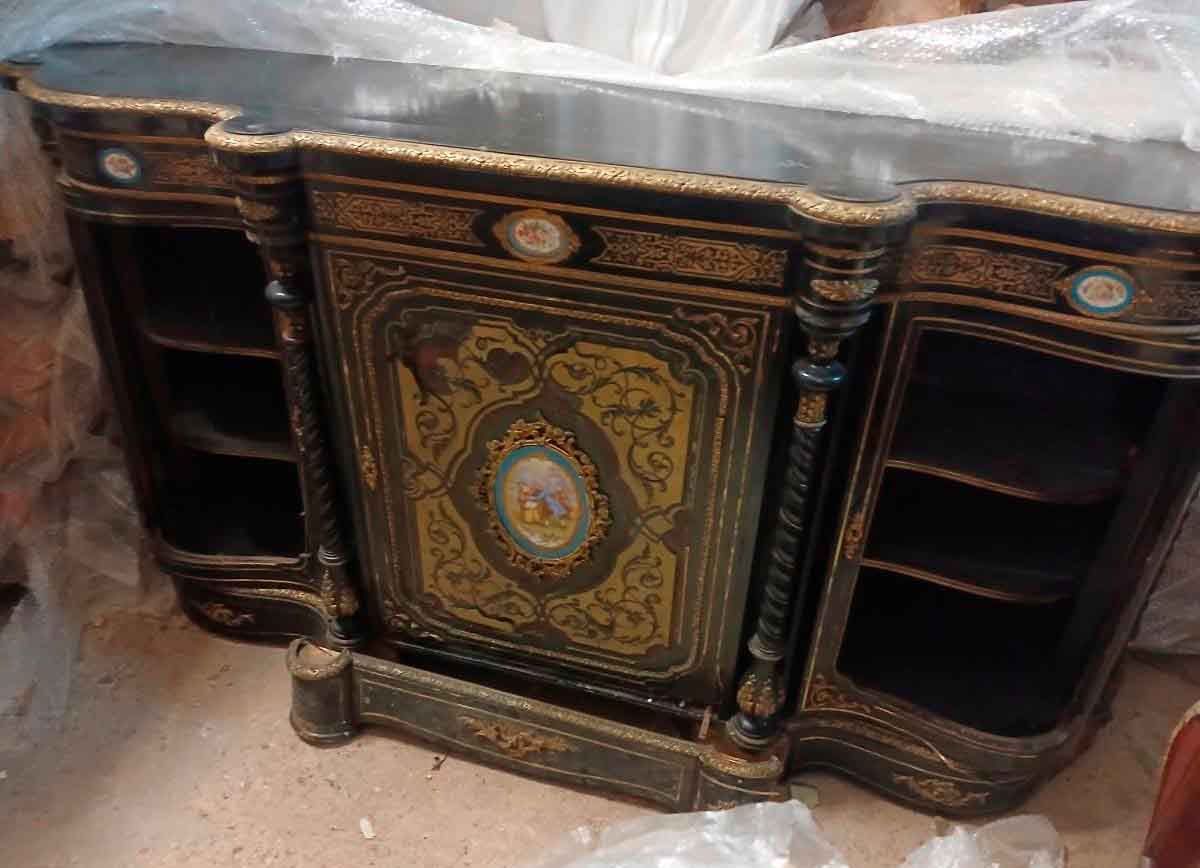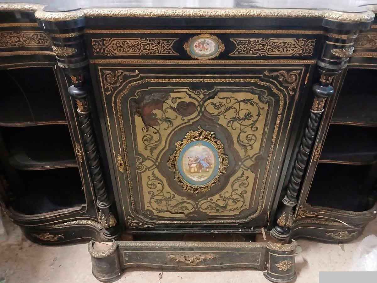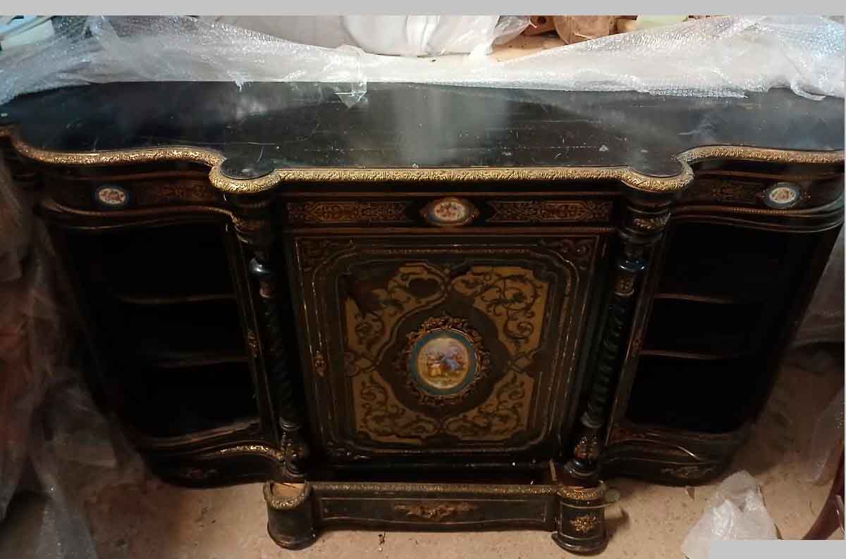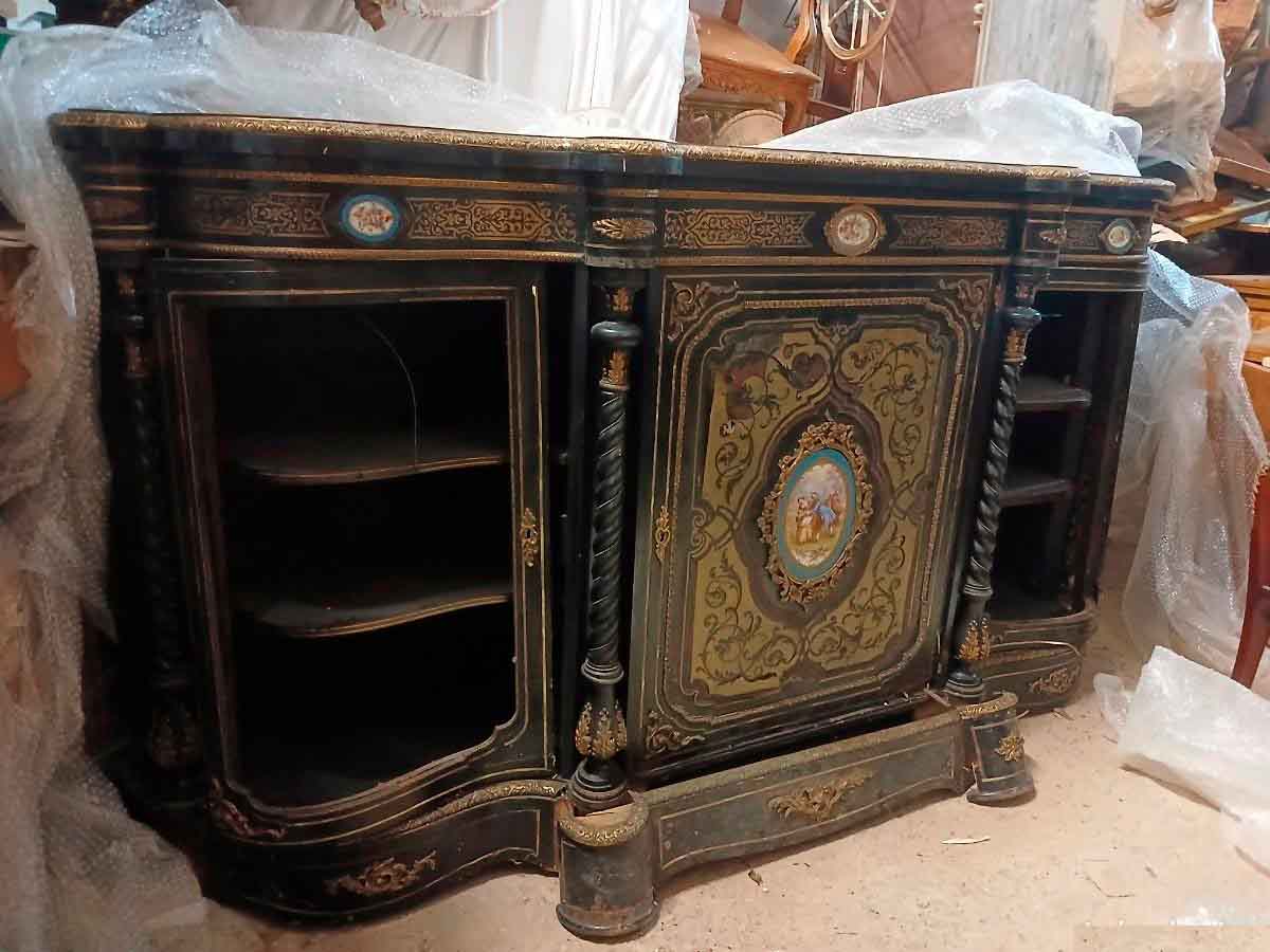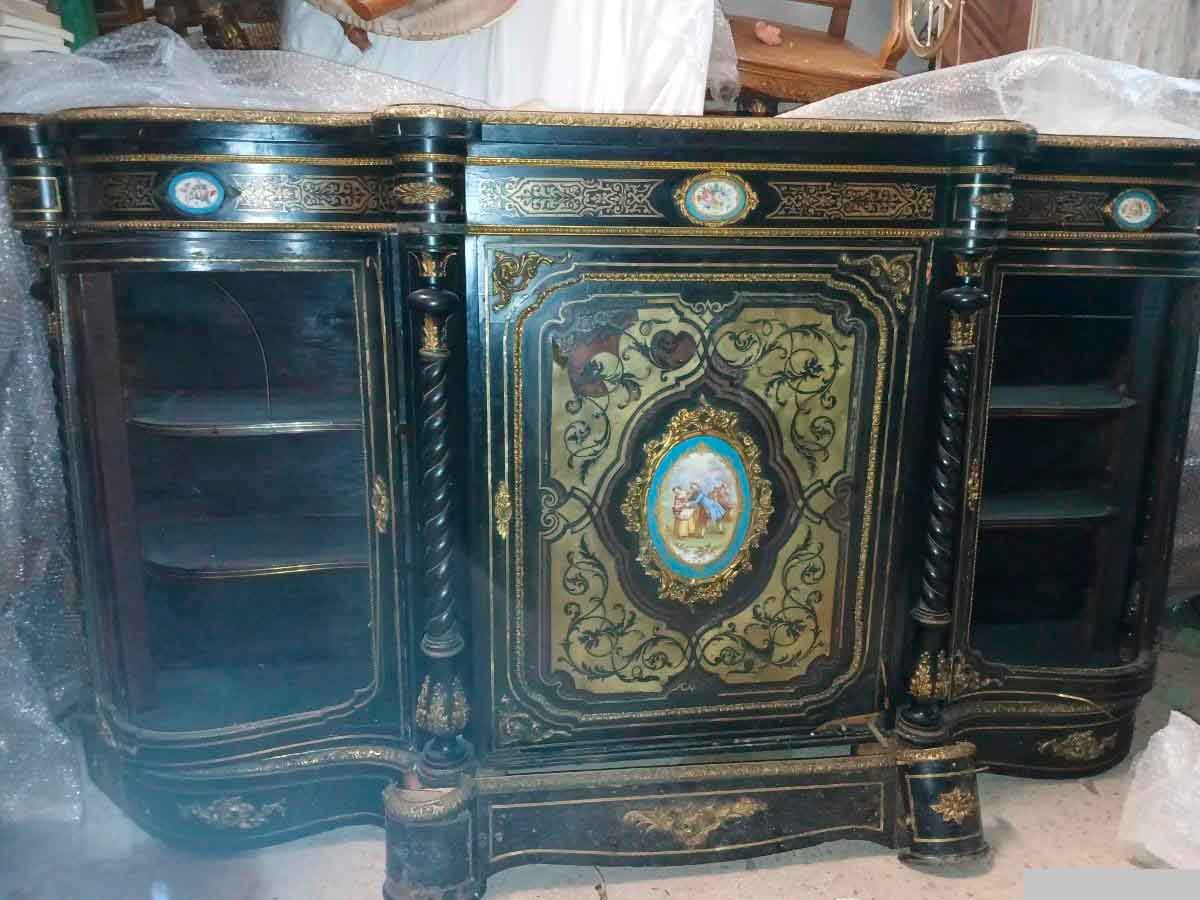 Aparador antiguo estilo Napoleón III (s.XIX). Gran Mueble Buffet Inglés Victoriano boulle ebonizado.