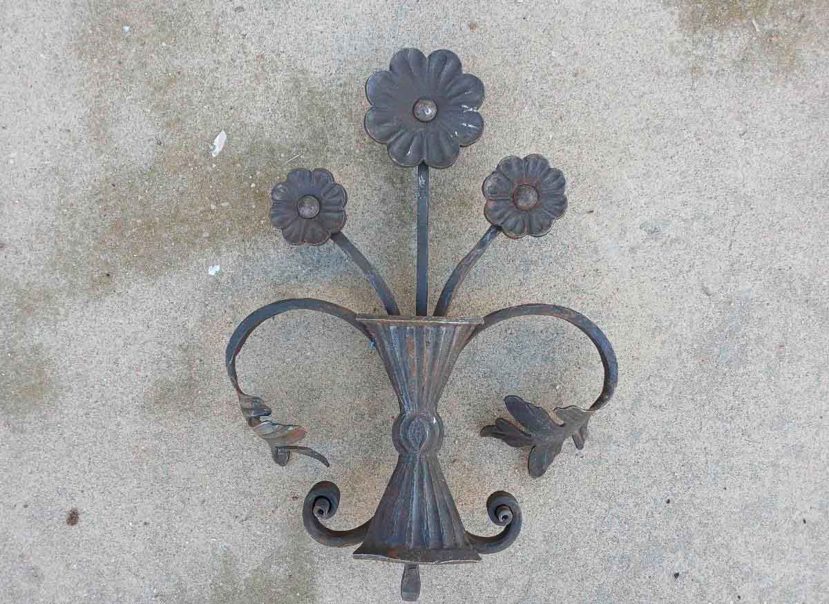 Aplique antiguo hierro forjado artesanal. Aplique pared adorno decorativo diseño antiguo motivo floral.