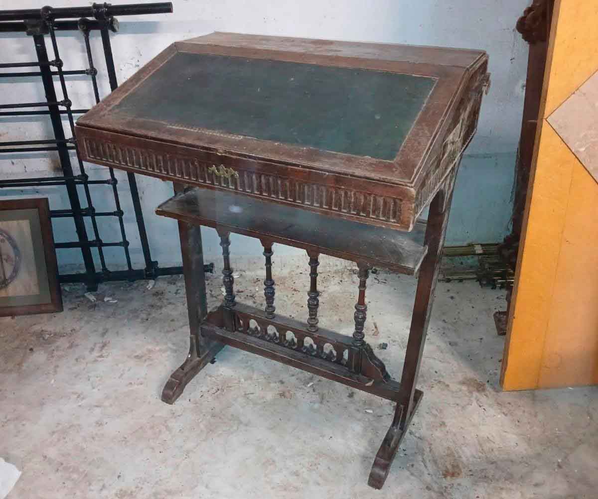 Atril antiguo Biblioteca estilo Ingles Victoriano. Mueble Facistol Atril Secreter antiguo cuero verde.