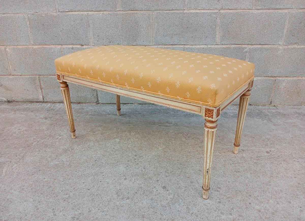Banqueta antigua estilo Luis XVI. Silla Descalzadora antigua vintage. Taburete Escabel antiguo.