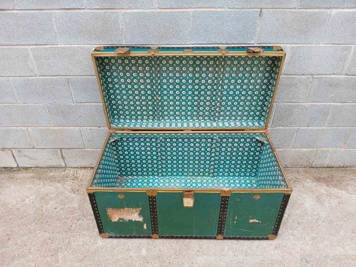Baúl antiguo de metal color verde. Baúl antiguo equipaje, Arcón antiguo, Arca antigua.