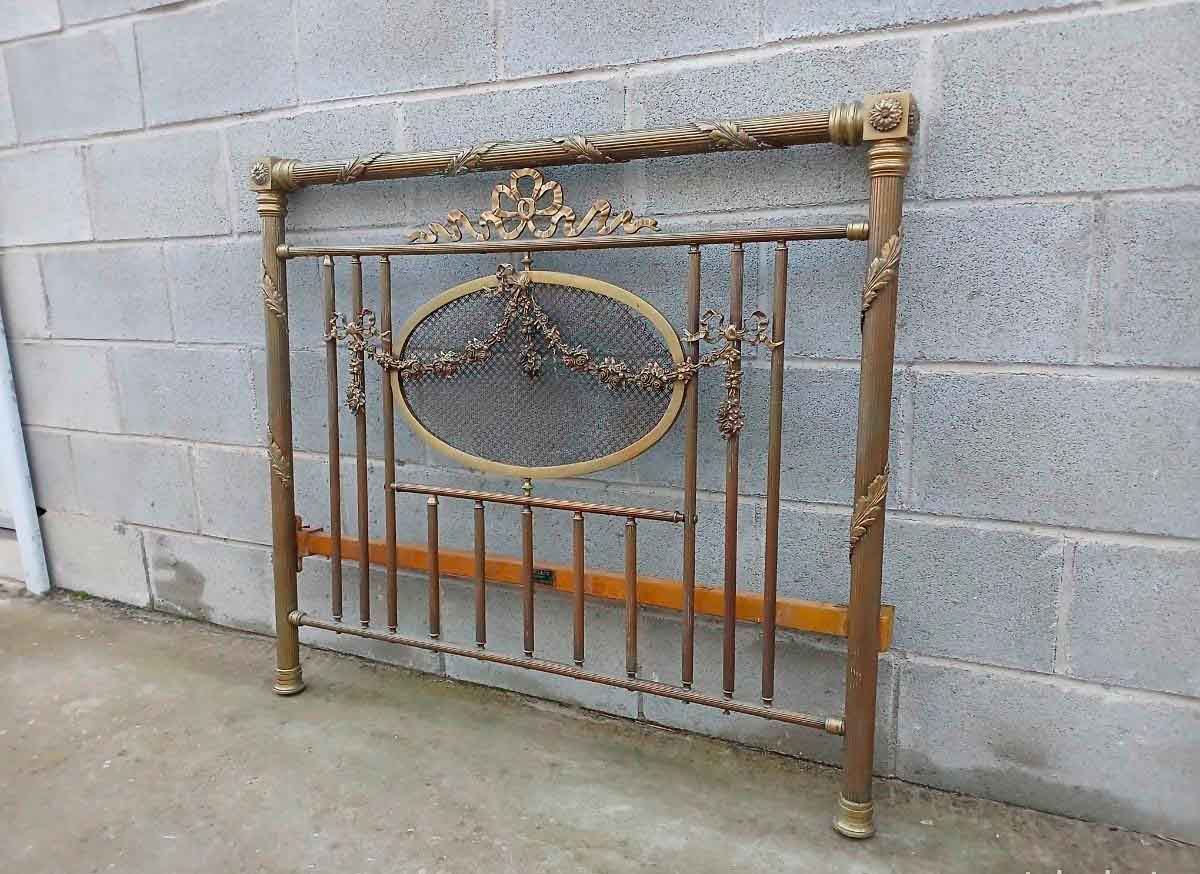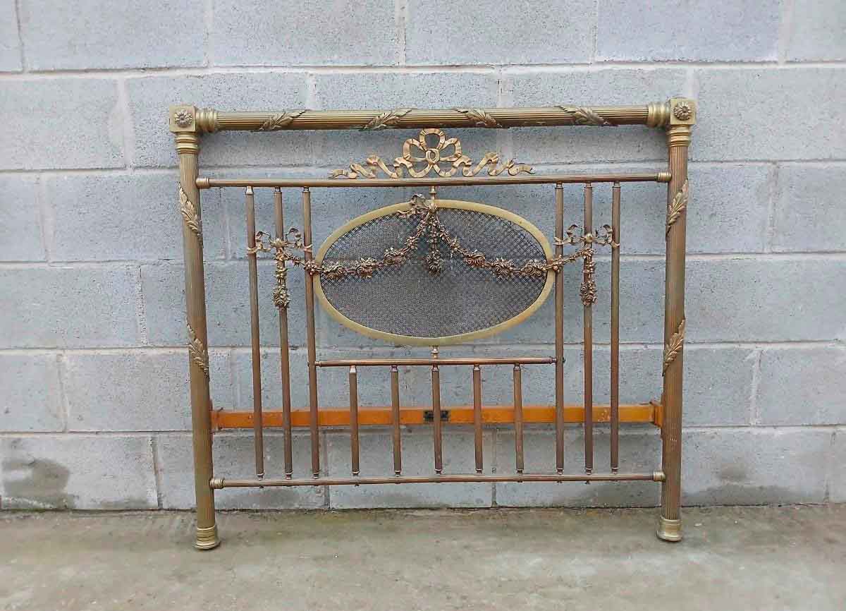 Cabecero antiguo bronce estilo Luis XVI (100 / 90 cm). Cama antigua vintage Modernista.