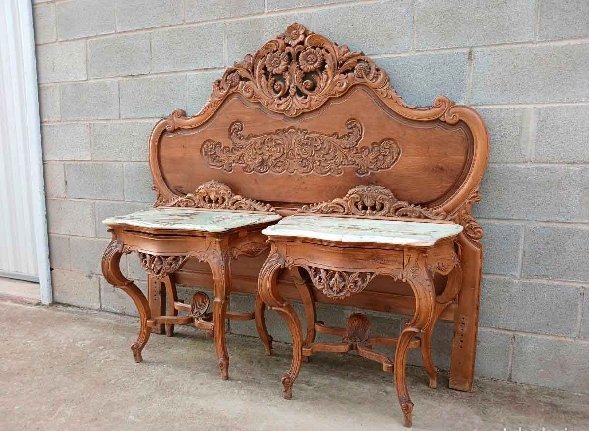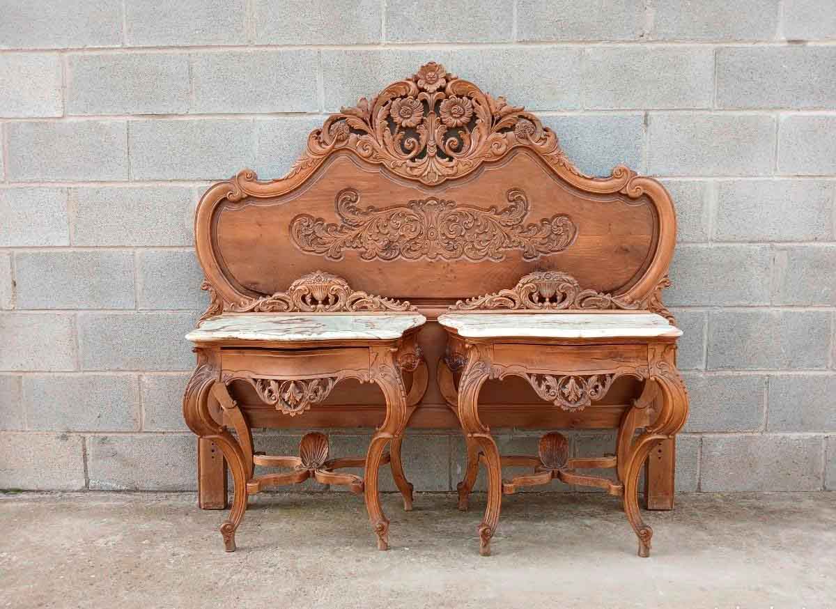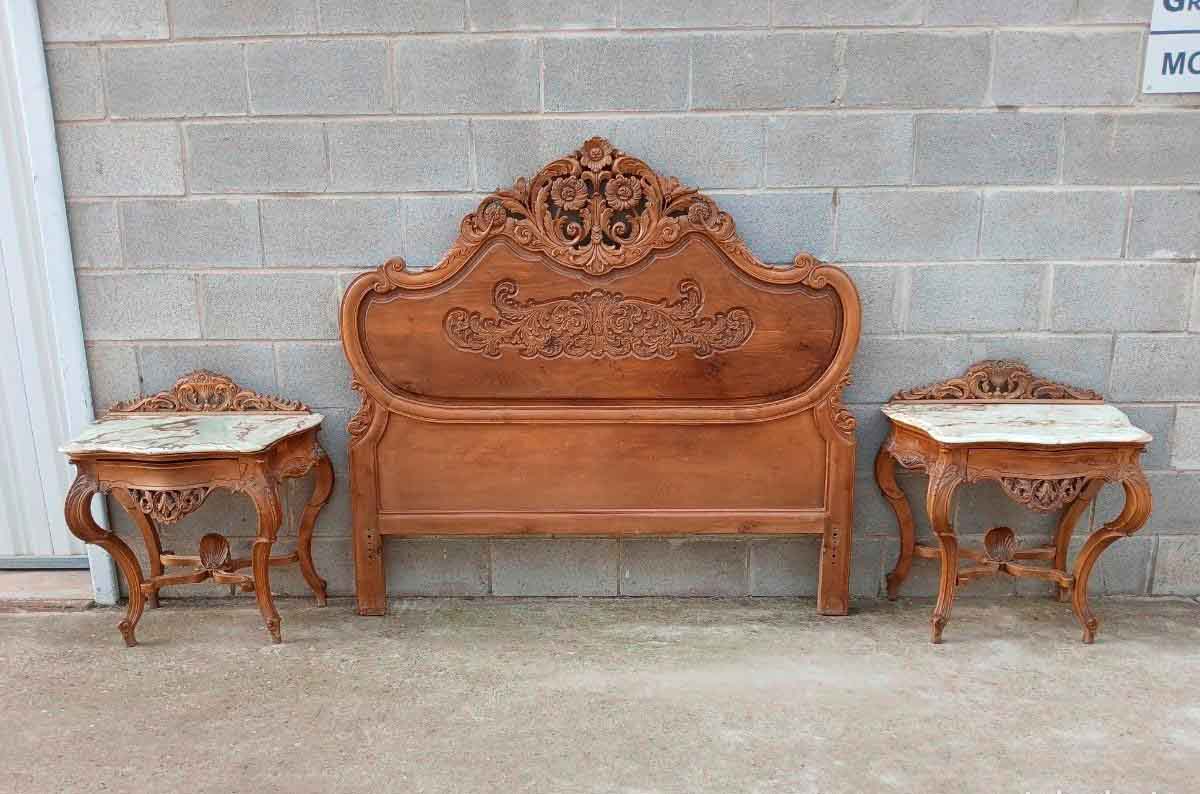 Cabecero antiguo estilo Luis XV 150 cm + 2 Mesitas Mesillas de noche antiguas. Cama antigua Barroco.