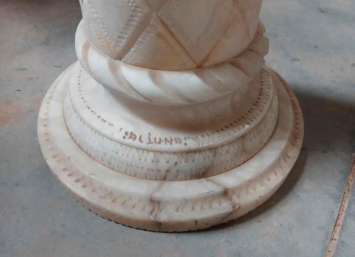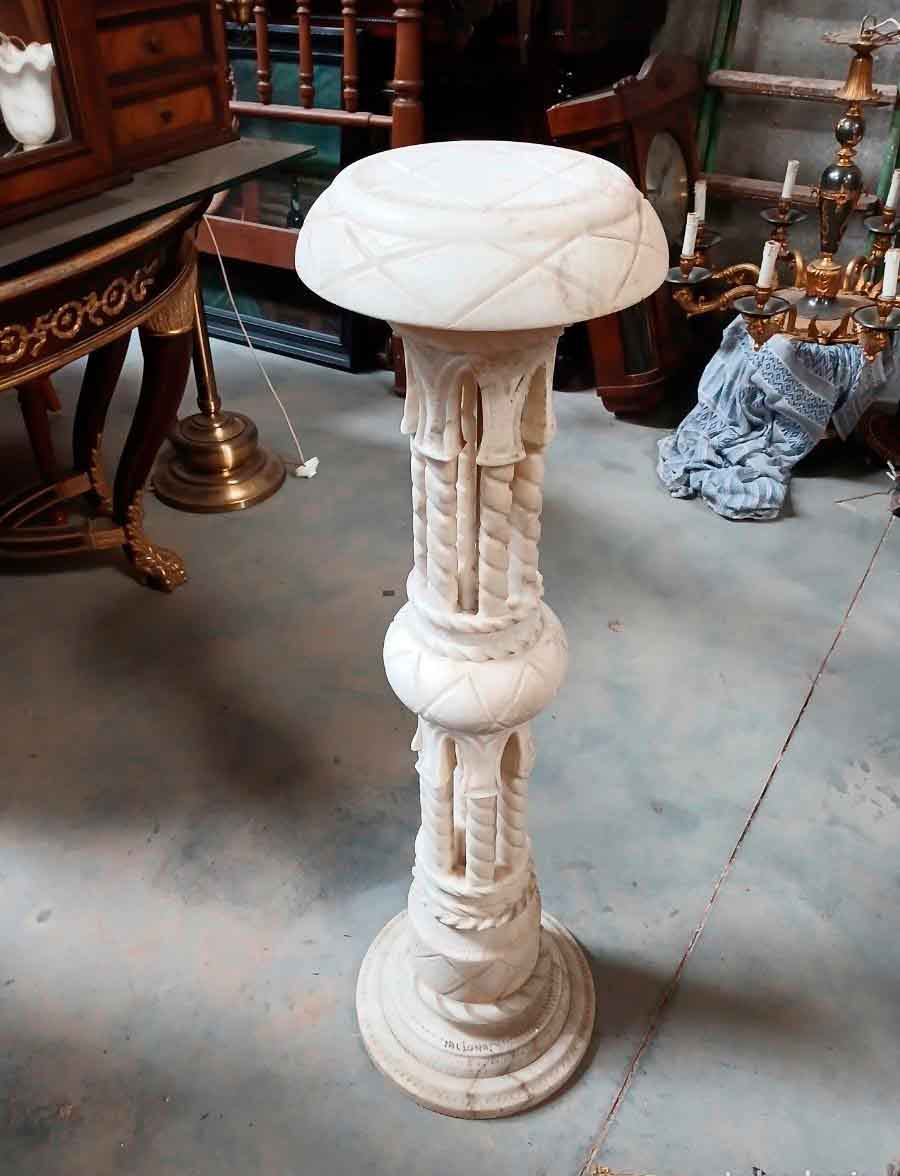 Columna antigua Estrella Judía (firmado autor). Columna mármol alabastro esculpida estilo Judío.