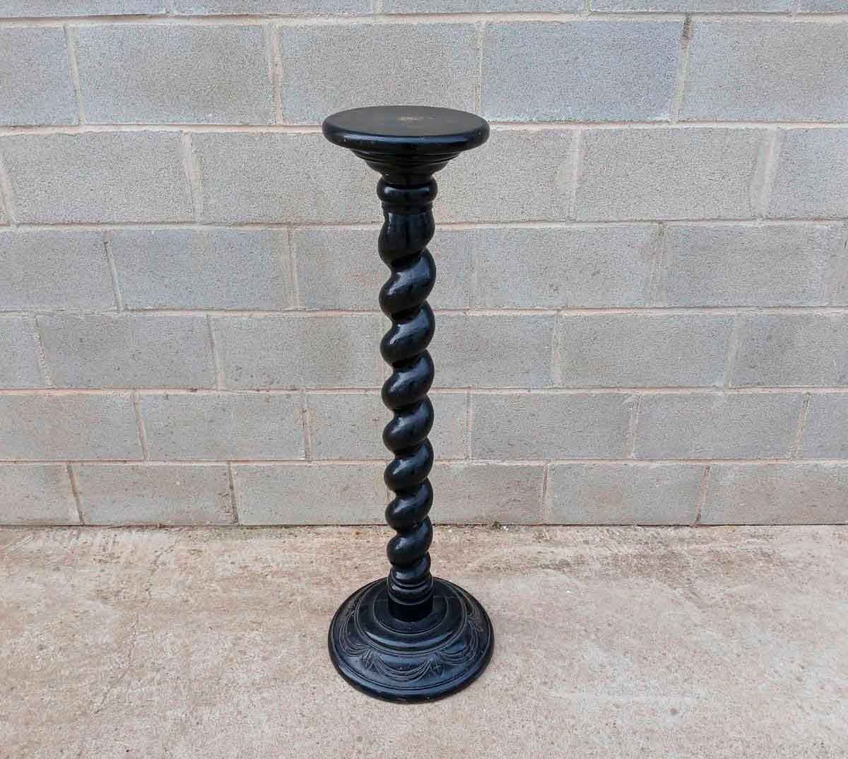 Columna antigua salomónica. Columna de madera ebonizada. Pedestal pie.