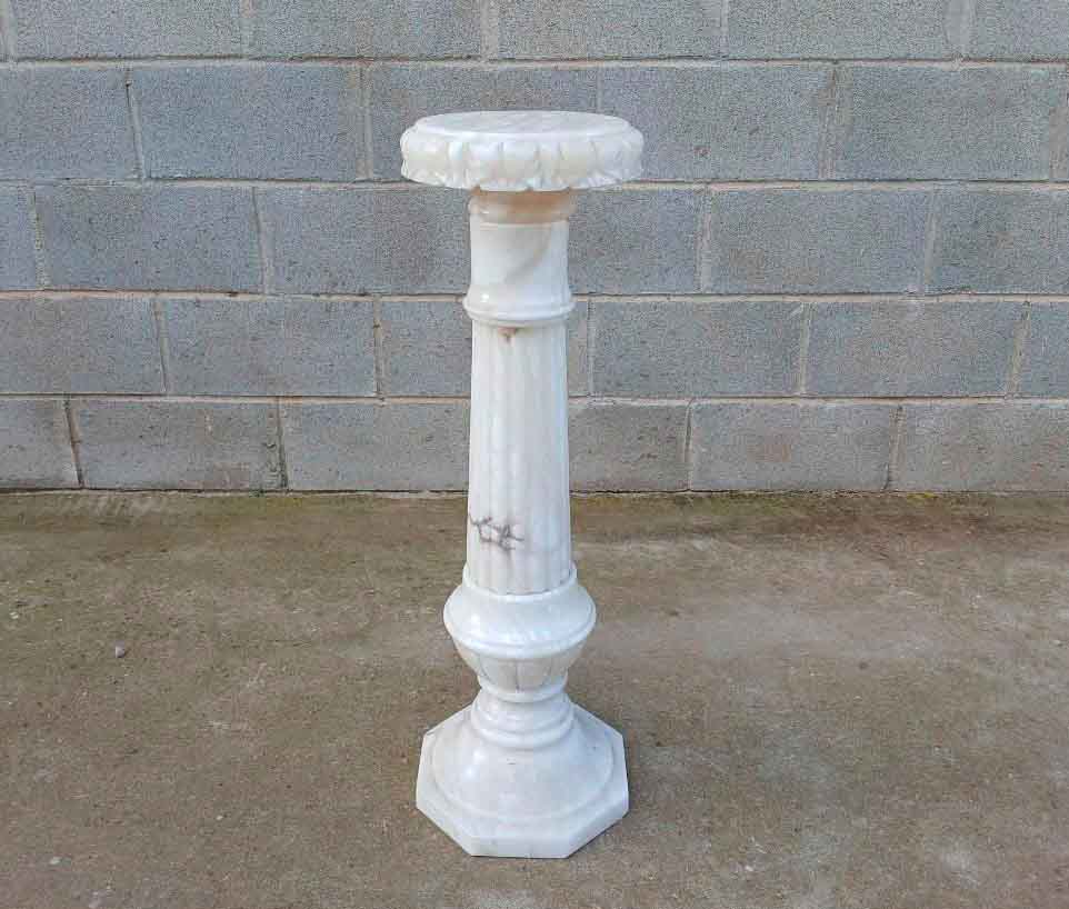 Columna pedestal antigua mármol alabastro. Columna de pie macetero antiguo.