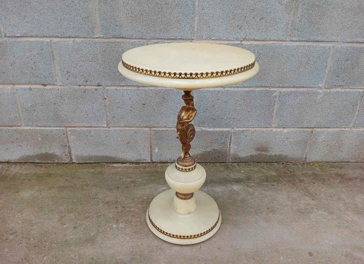 Columna pie antigua. Pedestal figura escultura. Velador Mesa auxiliar mármol bronce estilo Luis XVI.