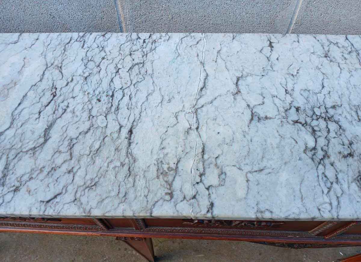 El mármol está partido por varios lados, colocado bien casi no se nota, se puede ver en detalle en las últimas fotografías.