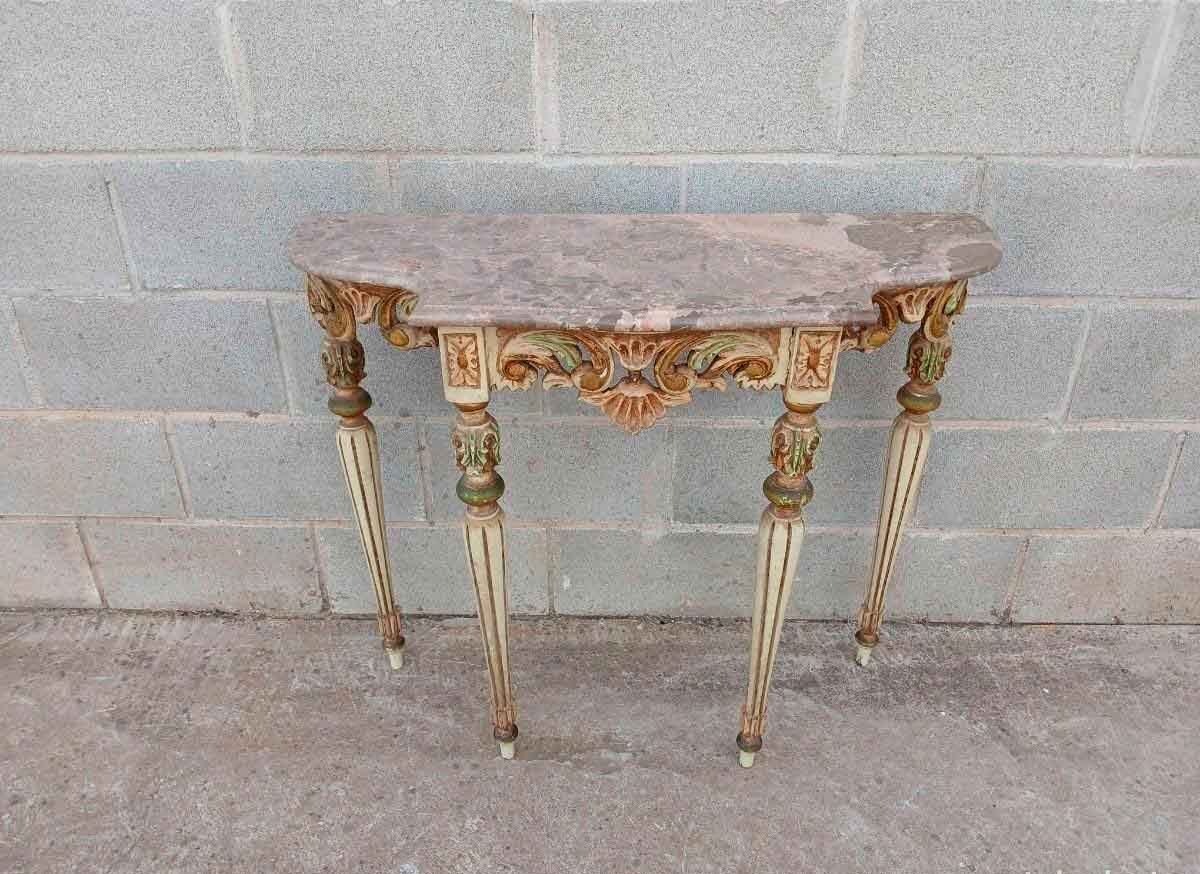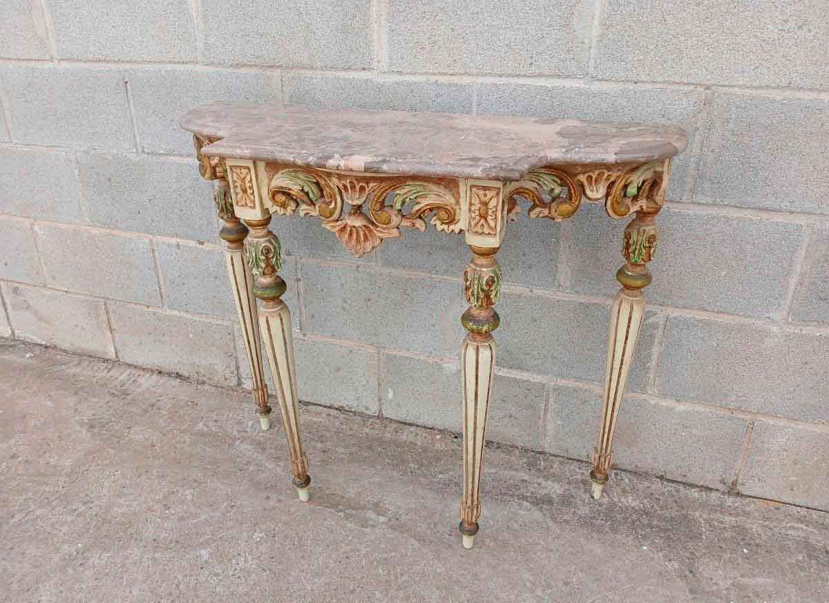 Consola antigua policromada estilo Luis XVI (88 cm). Mueble Consola antigua estilo inglés.
