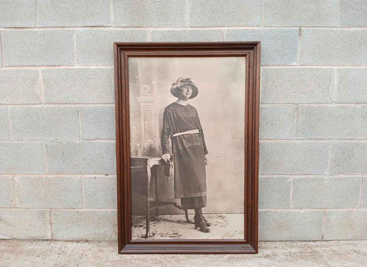 Cuadro antiguo con fotografía antigua de mujer, 1920 circa (113 cm).