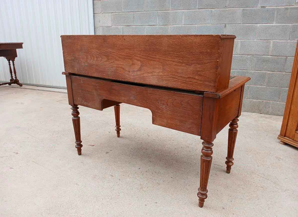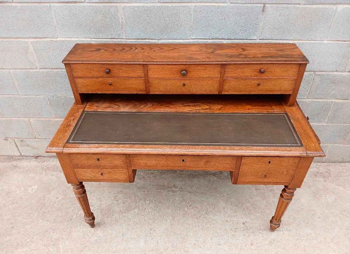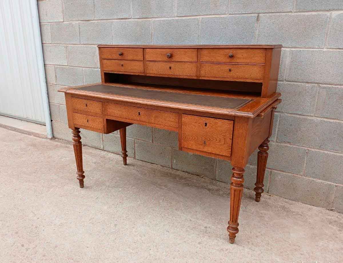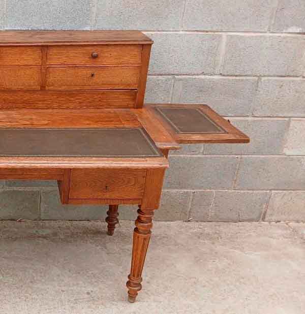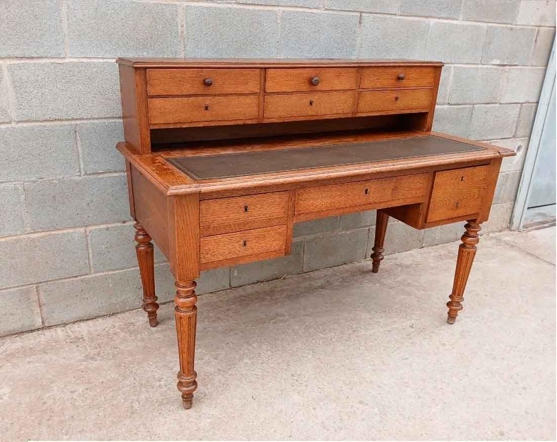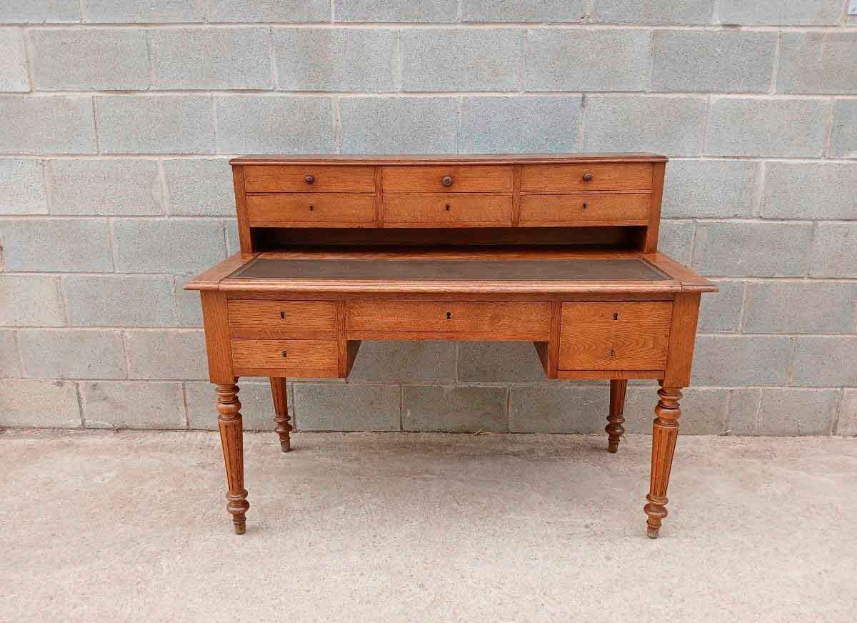 Escritorio antiguo cuero verde estilo inglés Victoriano. Mueble Mesa de Despacho antigua.