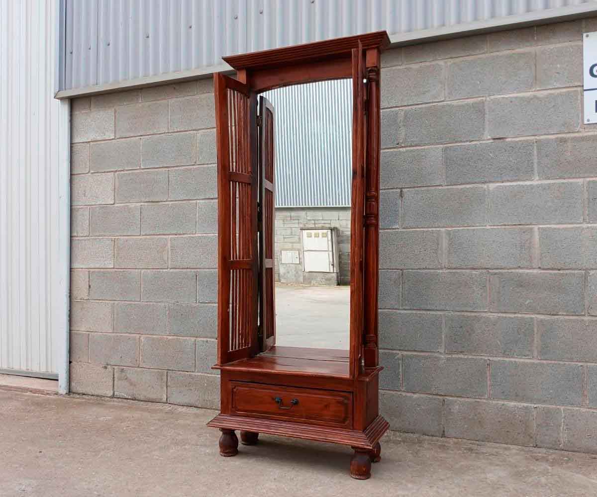 Espejo de vestidor antiguo estilo Inglés Colonial Oriental. Mueble Tocador Espejo entrada.