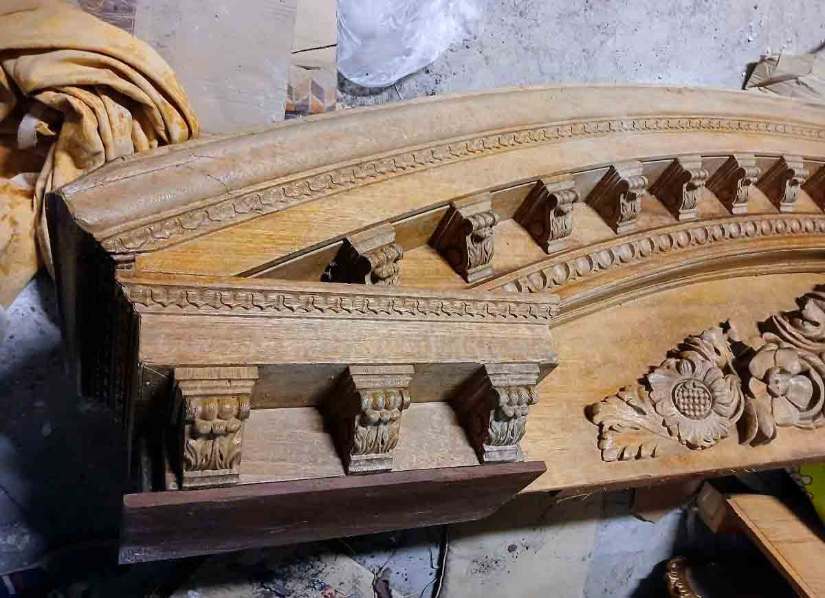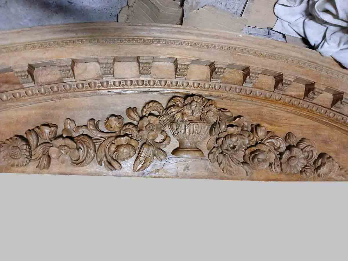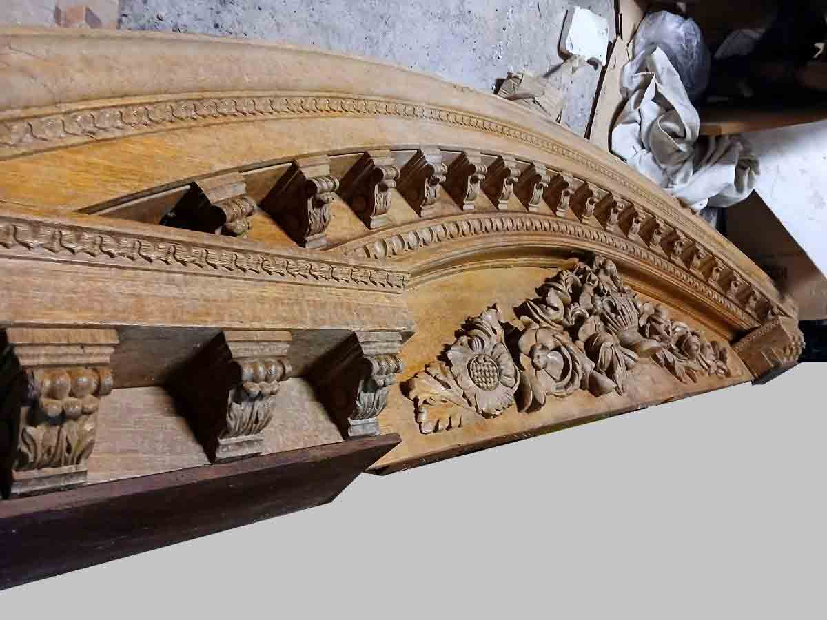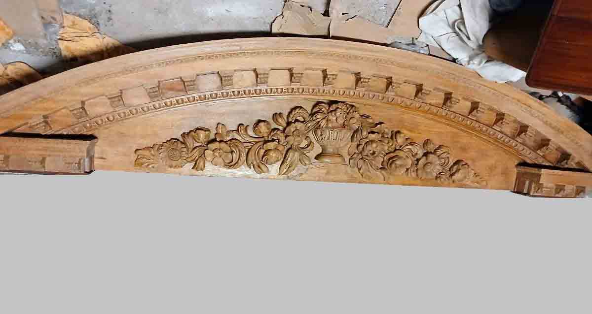 Gran Dintel madera antiguo portal o cochera (330 cm). Adorno Remate Copete para Mueble Estantería Librería.