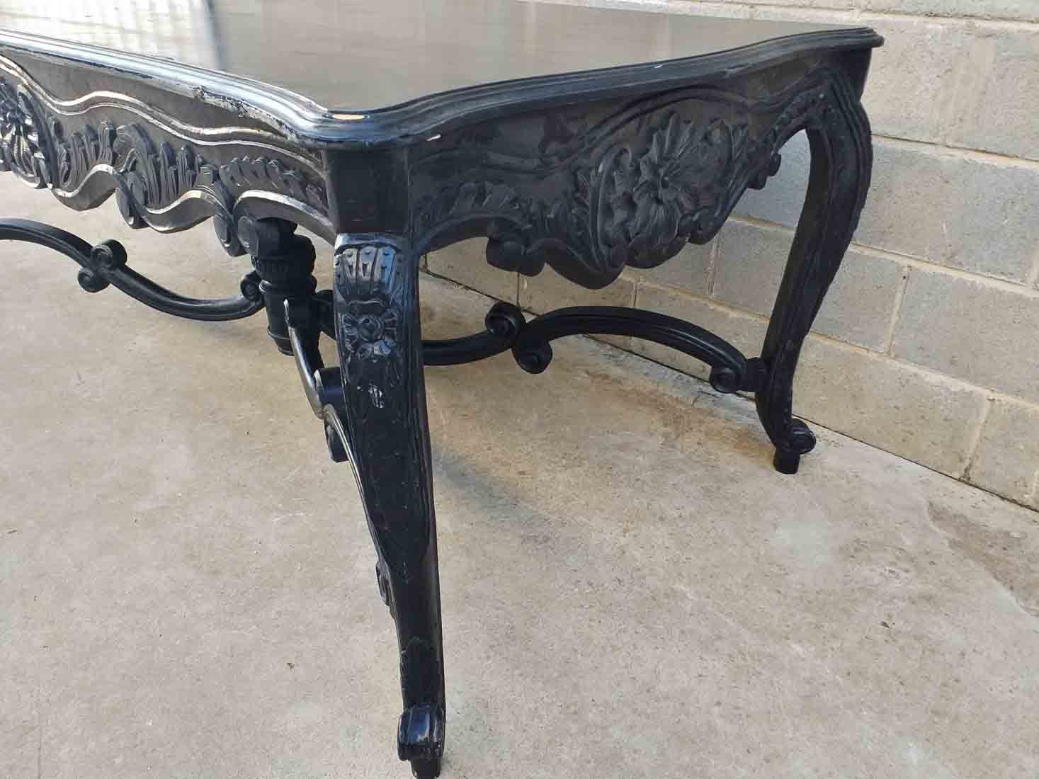 Mesa baja centro de salón antigua estilo Luis XV (73 cm). Mueble Mesa Auxiliar vintage Barroco.