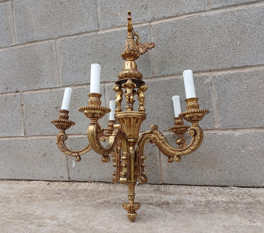 Lámpara antigua bronce estilo Luis XVI (70 cm). Lámpara techo araña bronce estilo Francés.
