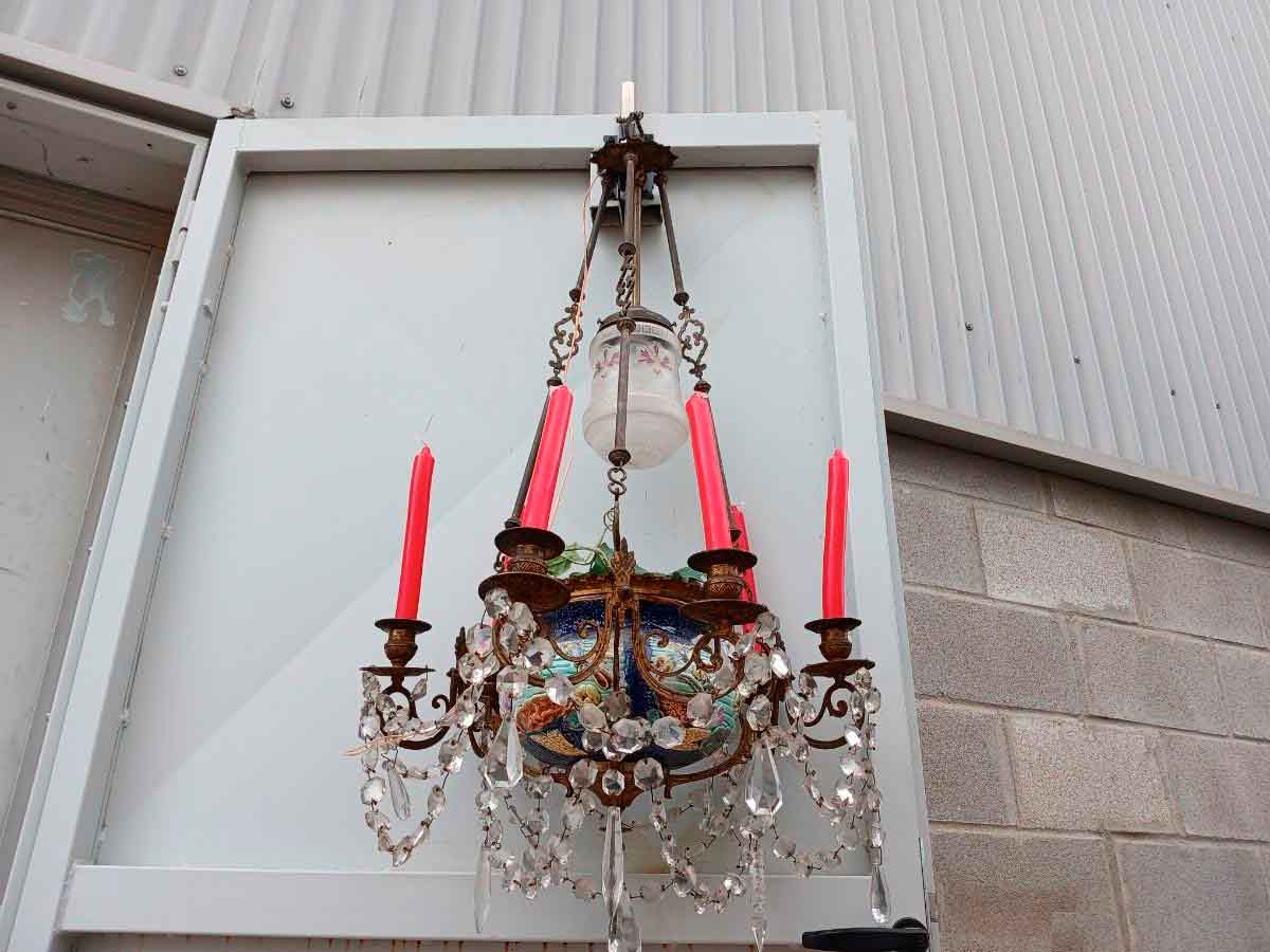 Lámpara antigua estilo Art Nouveau original 1900 Francia. Lámpara porcelana techo araña Modernista.
