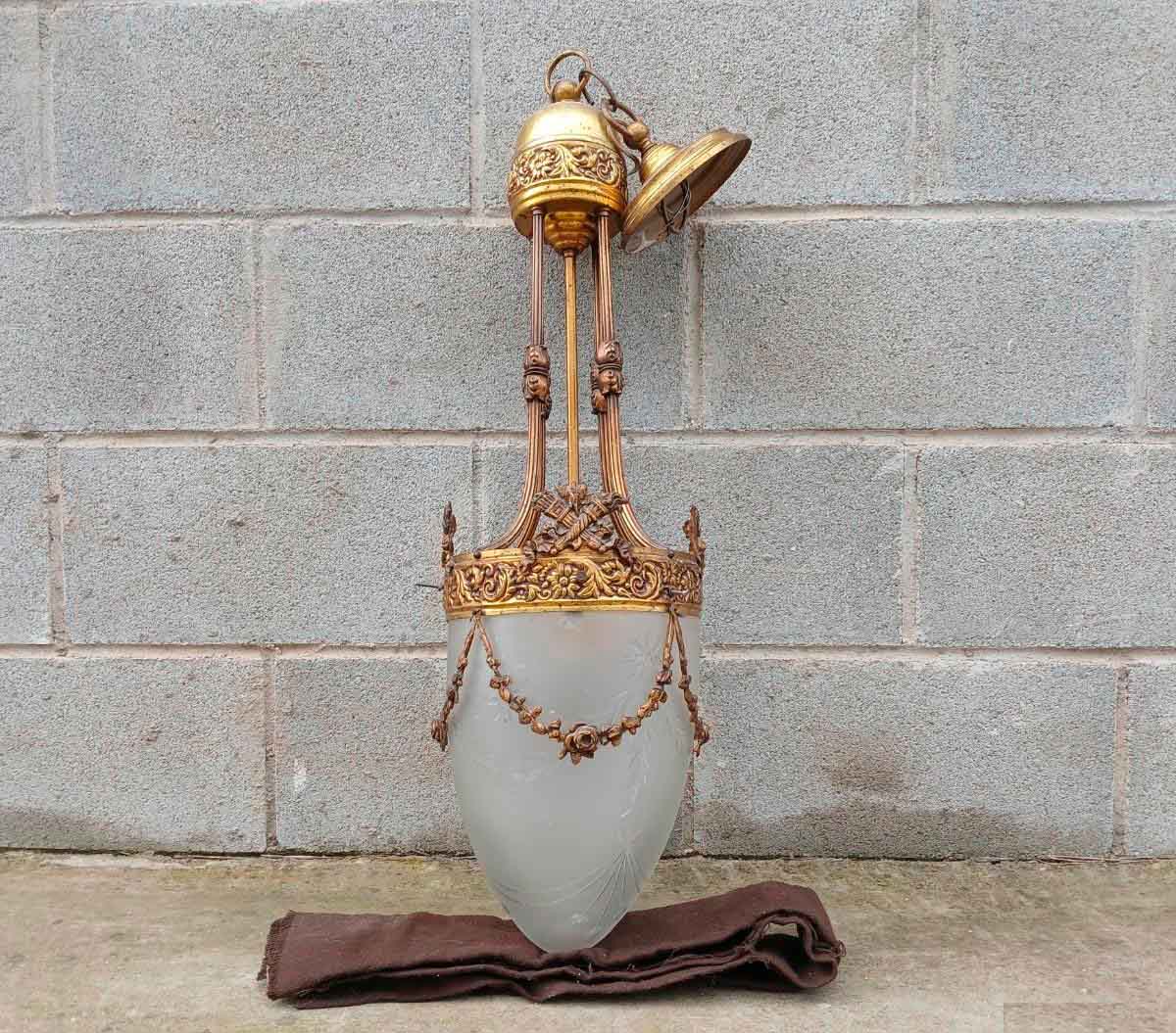 Lámpara antigua estilo Modernista Art Nouveau (80 cm). Lámpara de techo antigua estilo Luis XVI.