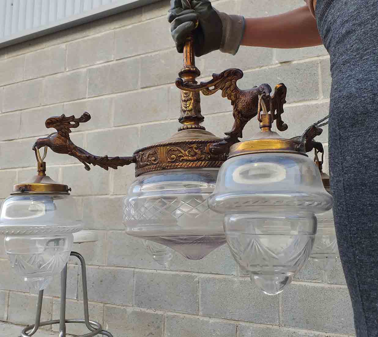 Lámpara antigua estilo Modernista cristal tallado. Lámpara de techo antigua, Lámpara de araña.