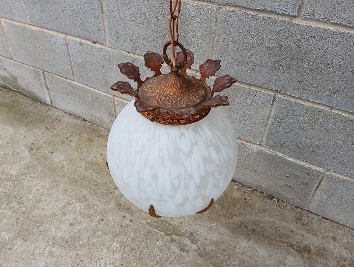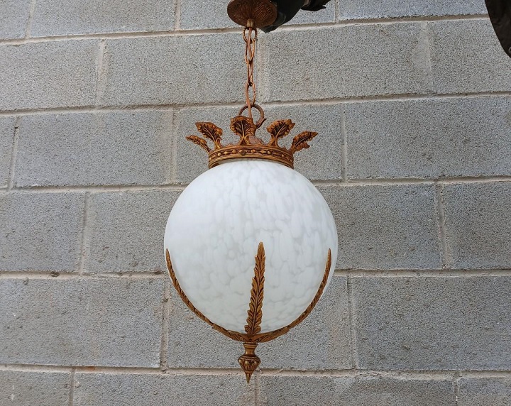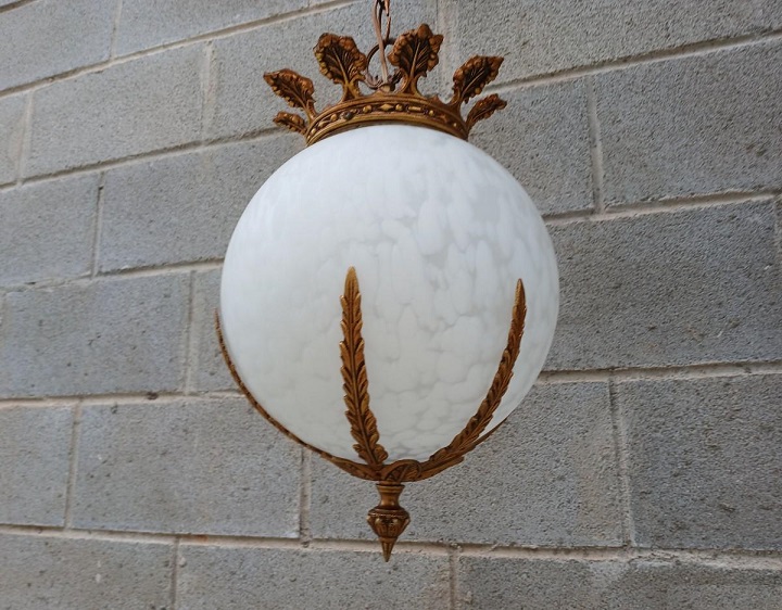 Lámpara antigua globo estilo Luis XVI. Lámpara techo bronce antigua vintage.