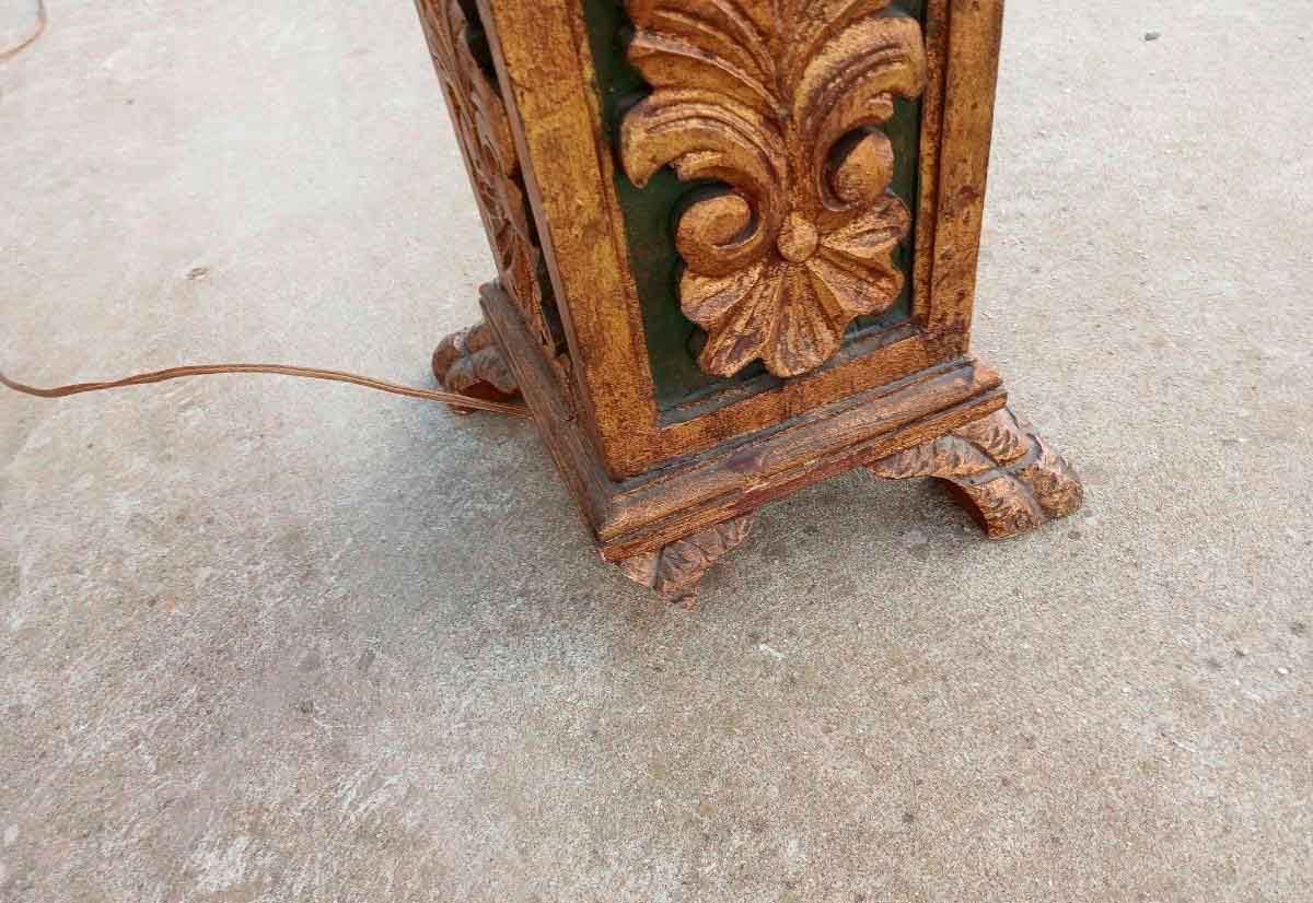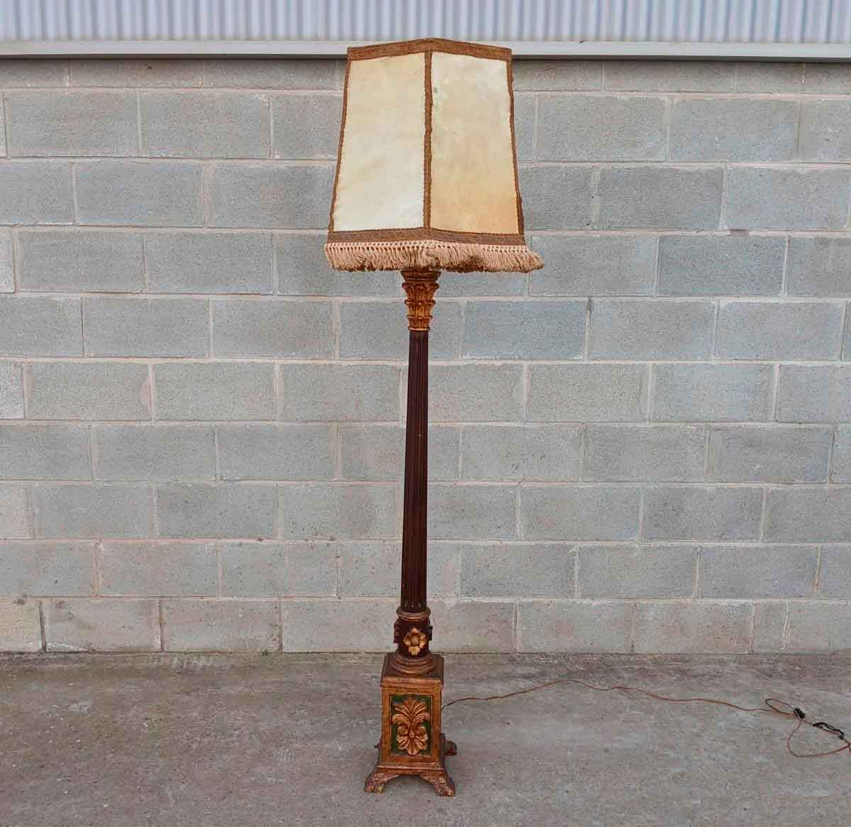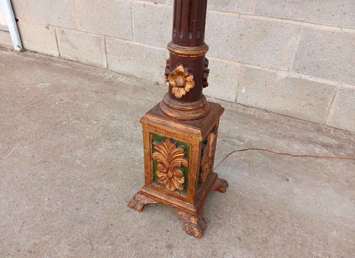 Lámpara pie antigua madera policromada estilo Renacimiento. Hachero antiguo Columna Corintia.
