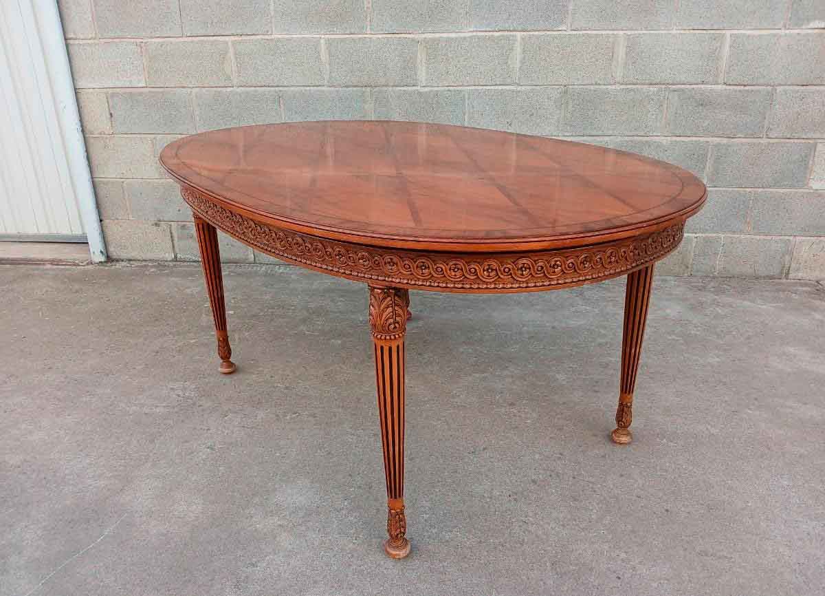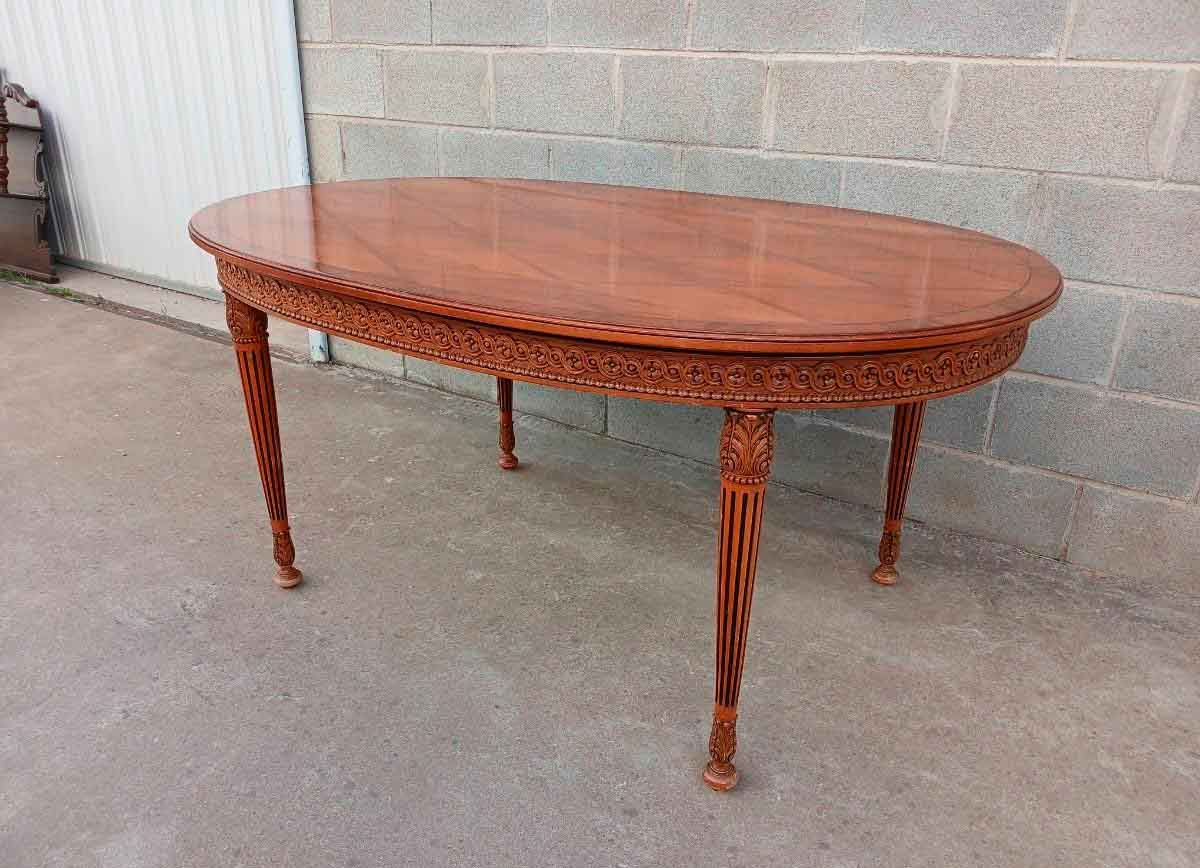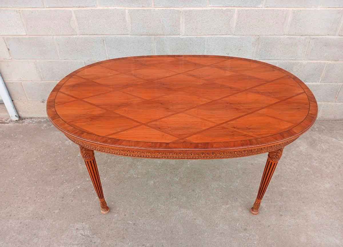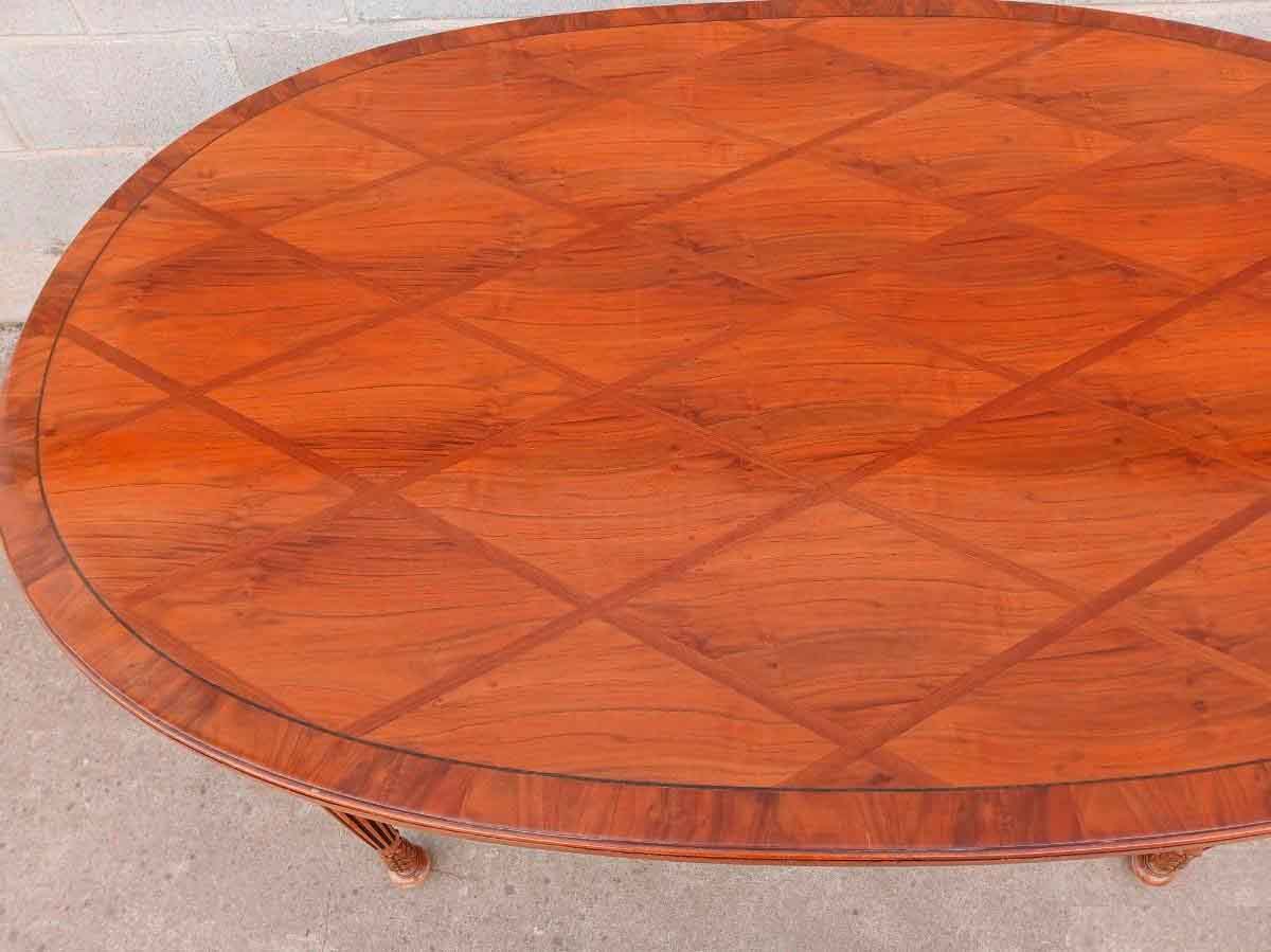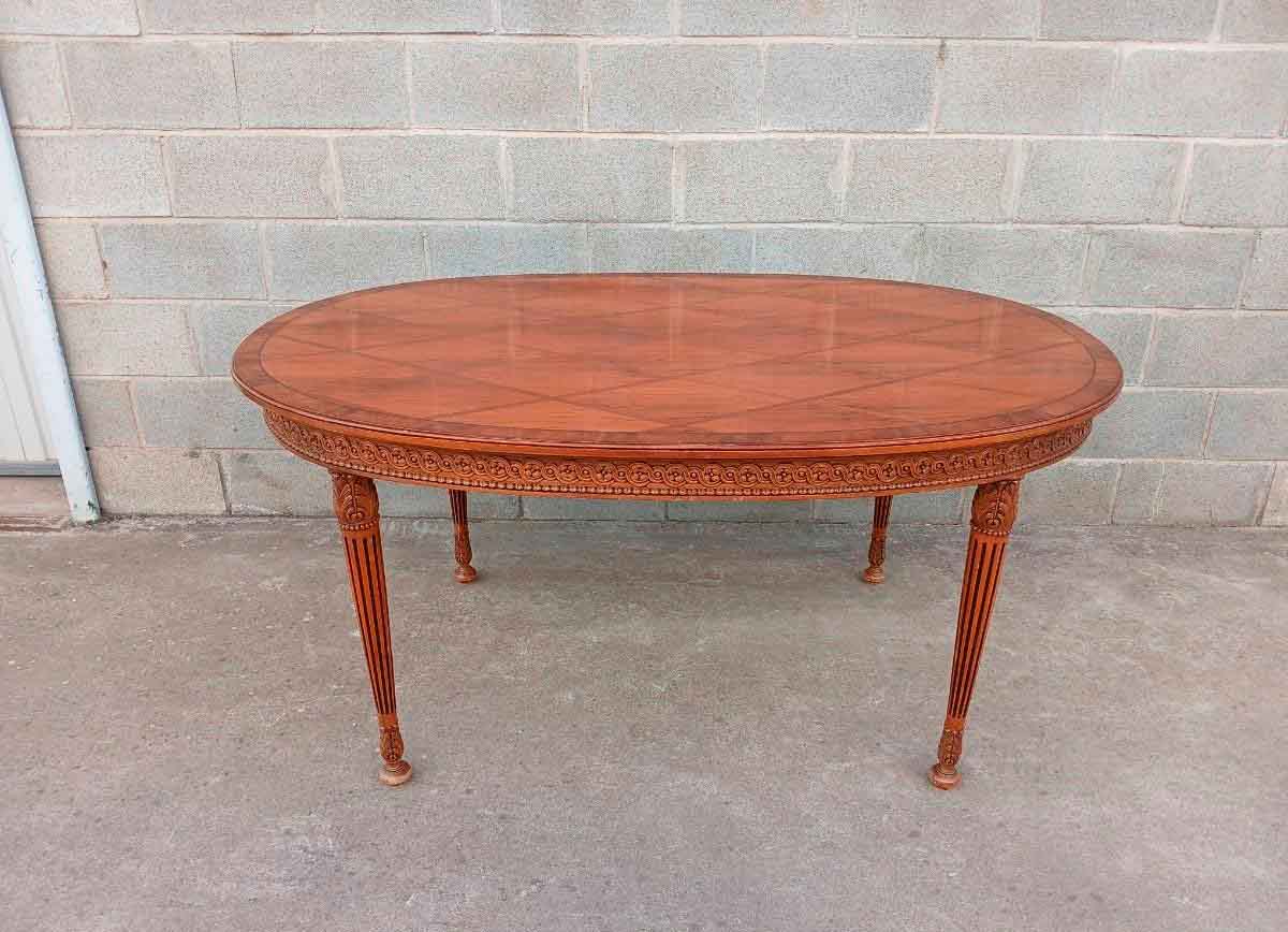 Mesa antigua ovalada 153 cm. Mesa Salón Comedor antigua Marquetería Rombos estilo inglés Victoriano.