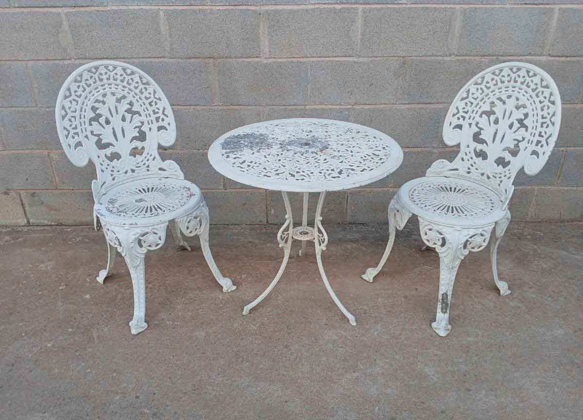 Mesa antigua vintage metal jardín + 2 Dos Sillas antiguas metal.