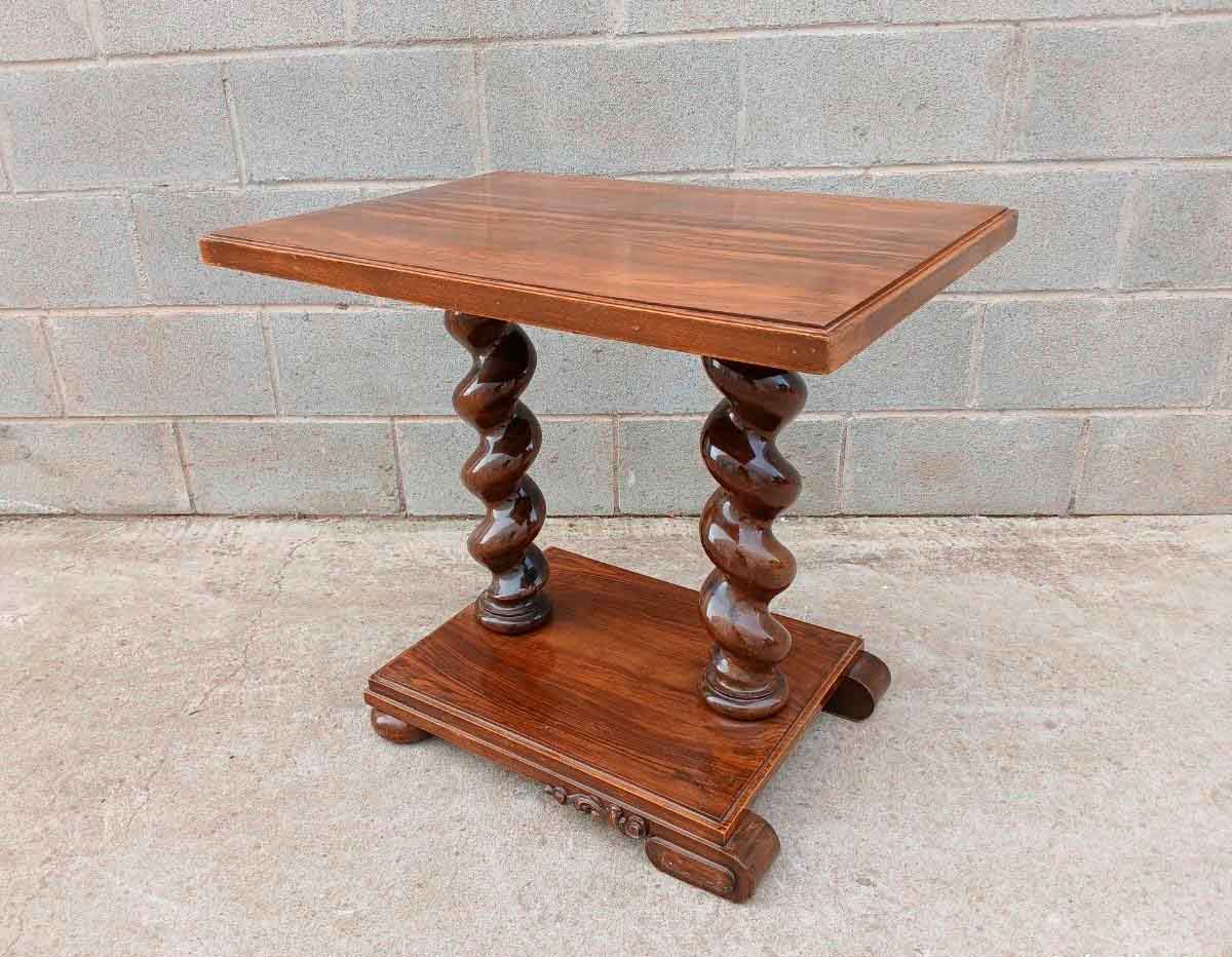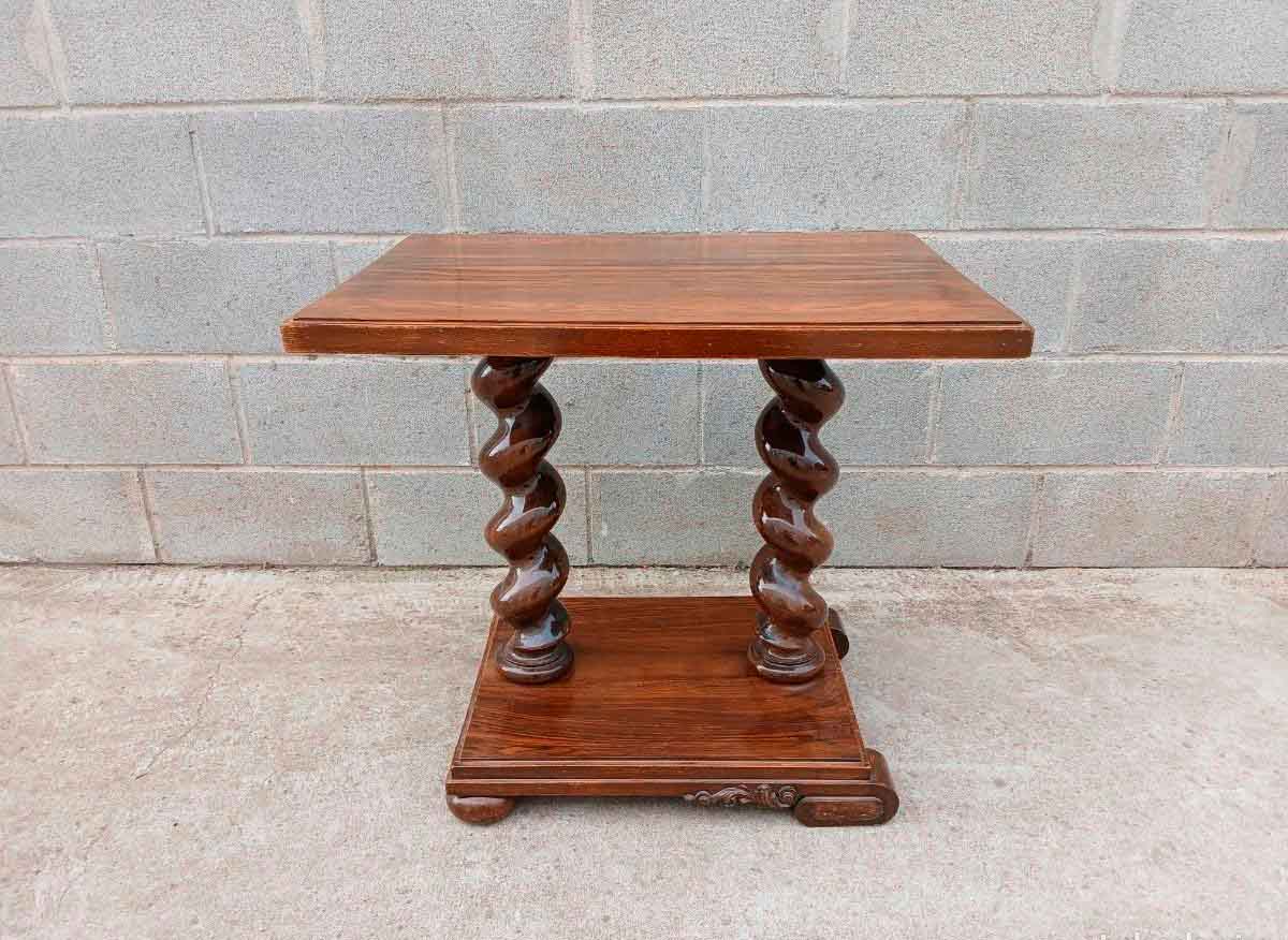 Mesa Auxiliar antigua estilo Art Decó (71 cm). Mueble Auxiliar Columna Salomónica Modernista.
