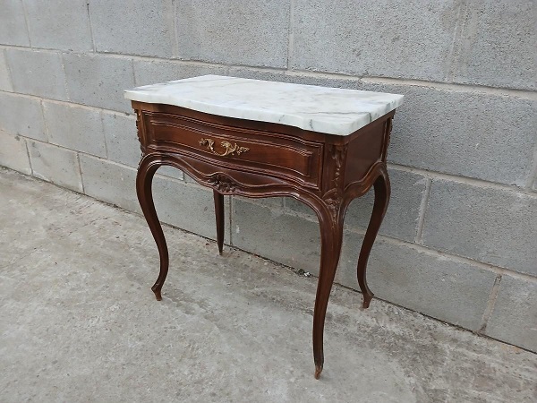 Mesa Auxiliar antigua estilo Luis XV. Mesita Dormitorio antigua, Mesilla de noche antigua Isabelino.