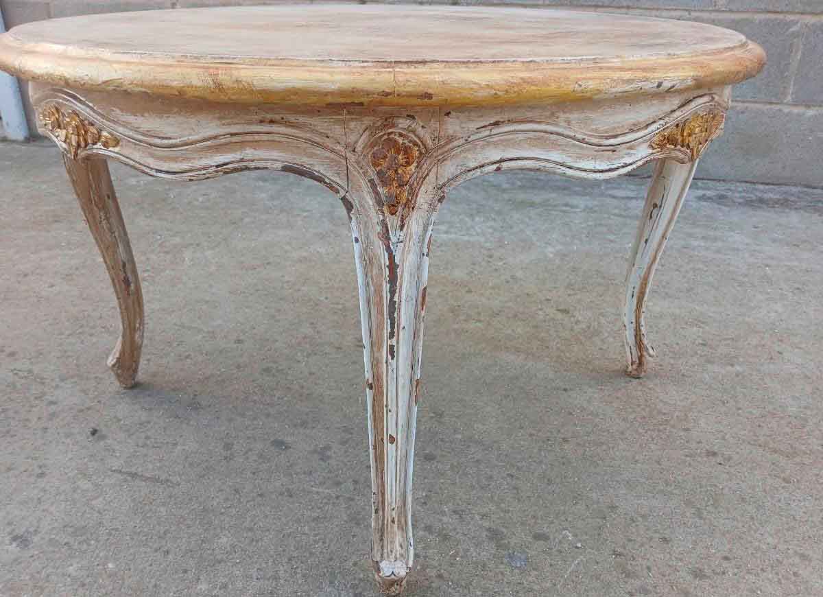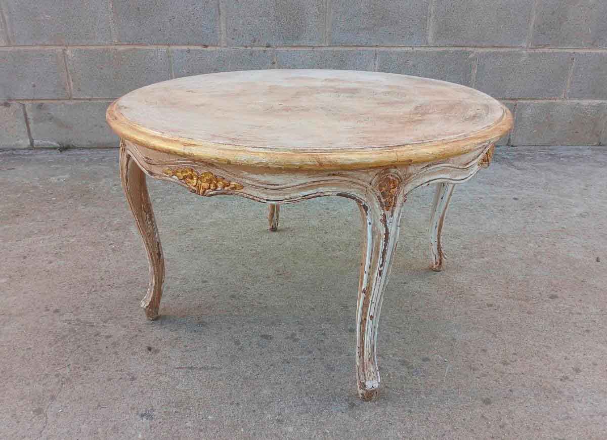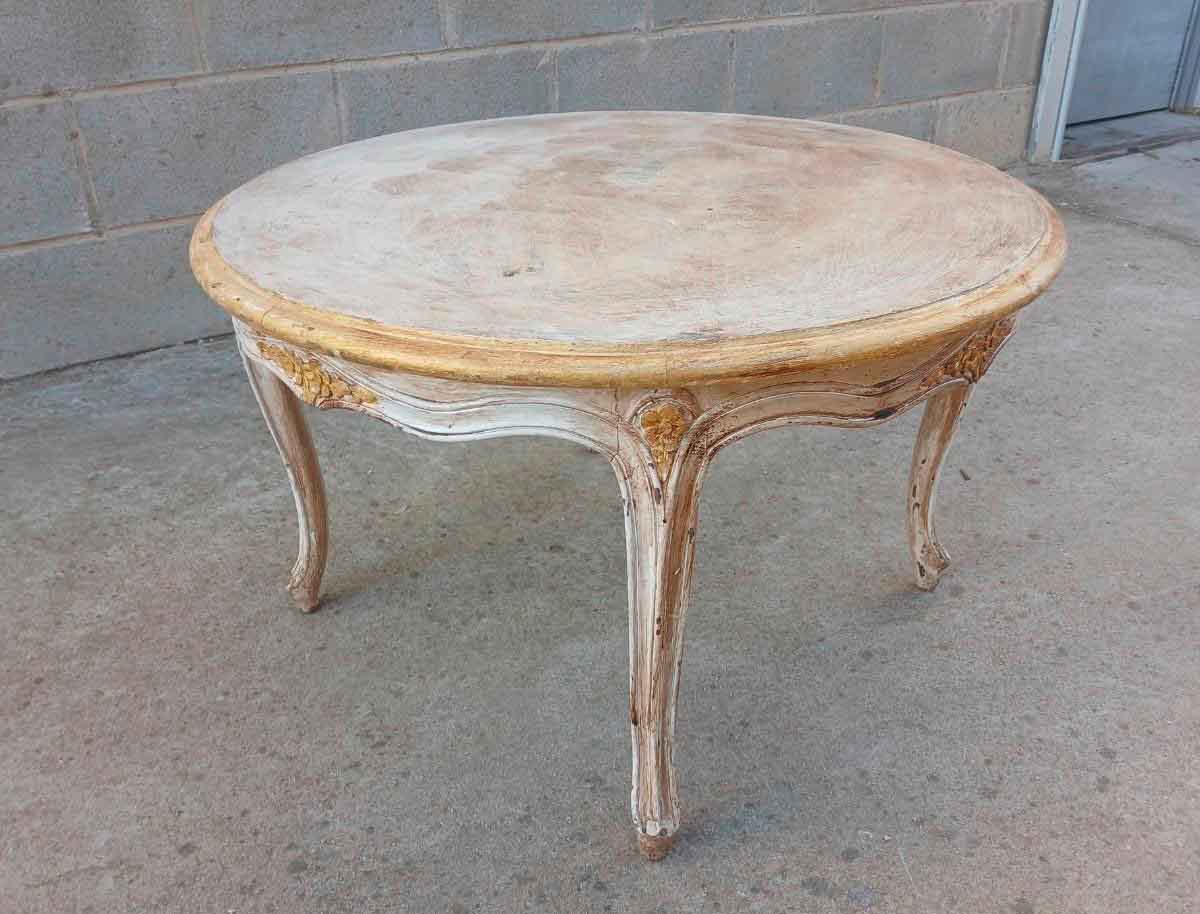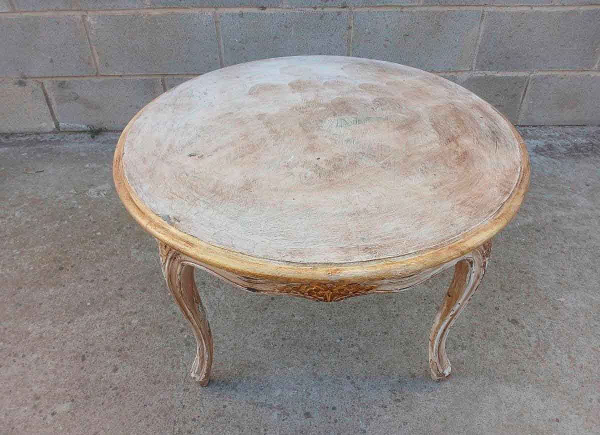 Mesa baja centro de salón antigua estilo Luis XV (73 cm). Mueble Mesa Auxiliar vintage Barroco.