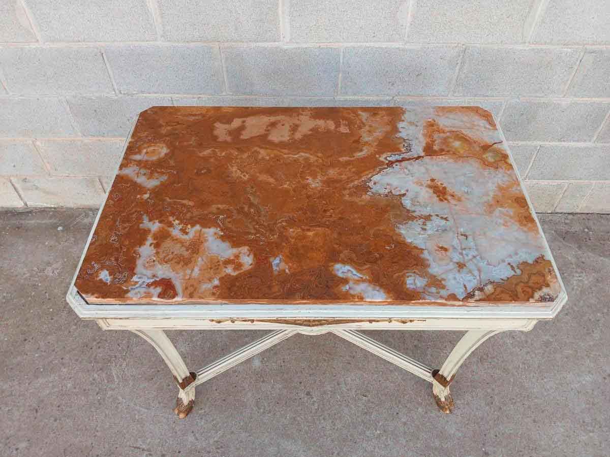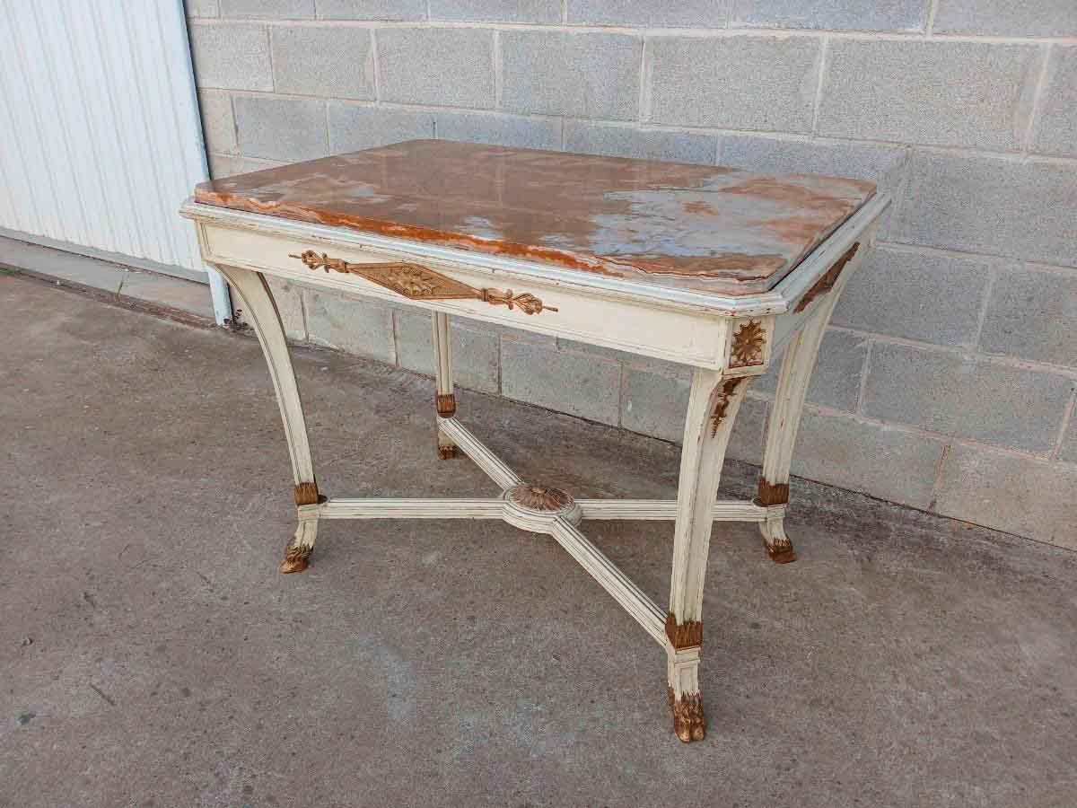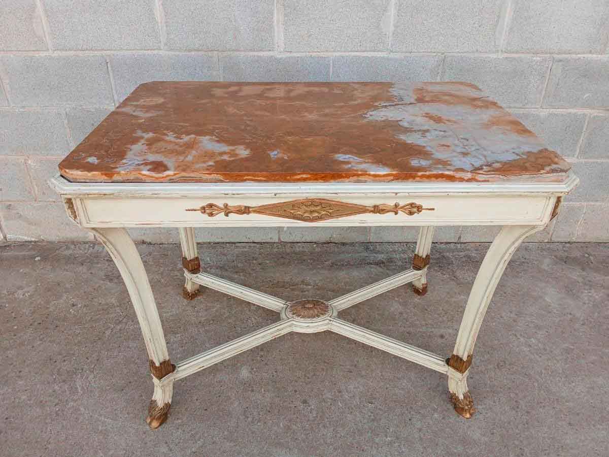 Mesa salón antigua estilo Luis XVI (105 cm). Mueble Mesa Auxiliar Consola policromada Regency.