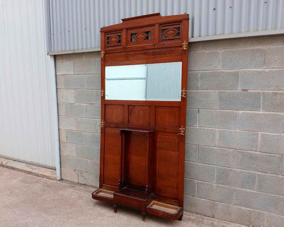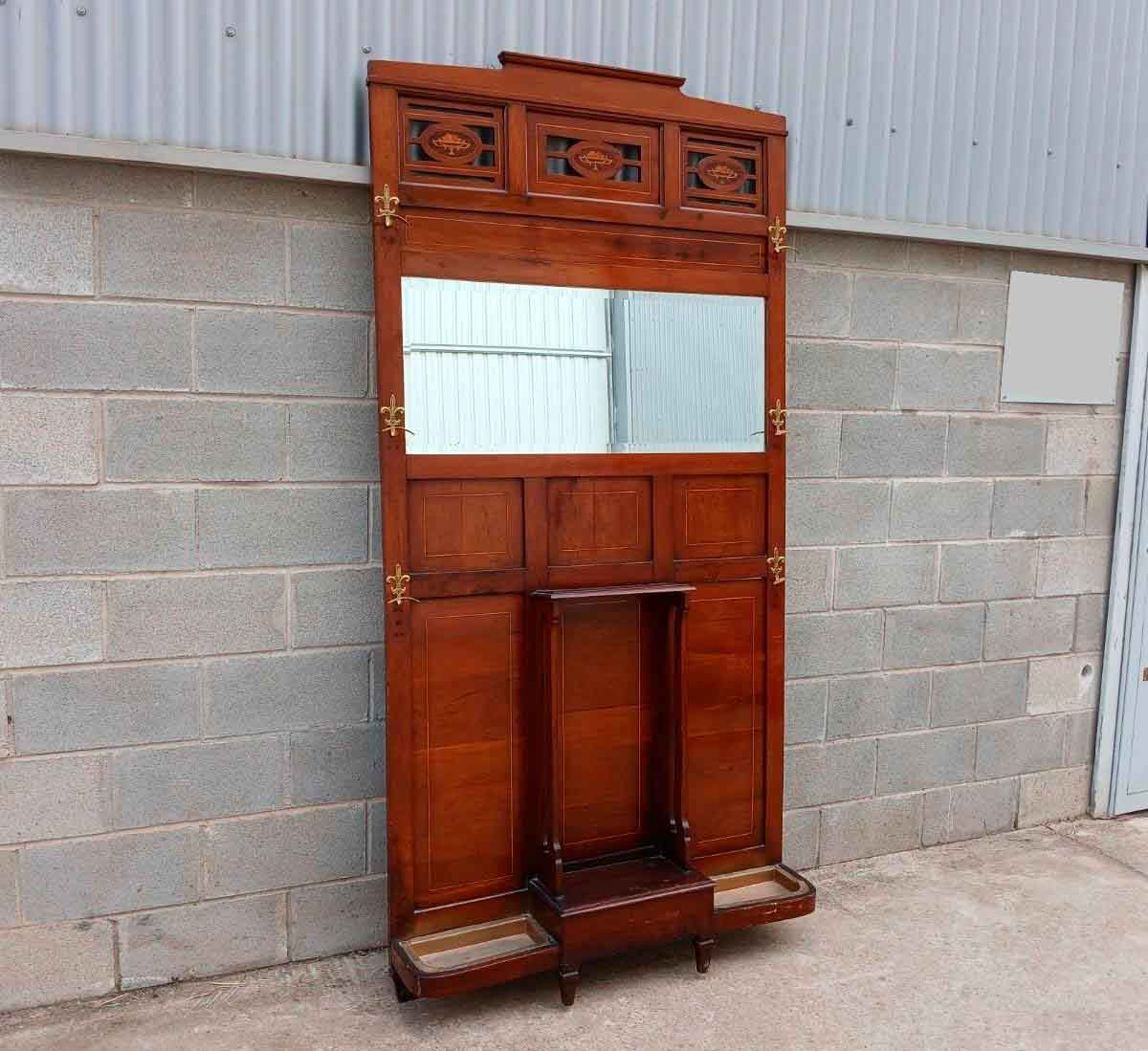 Mueble Entrada Perchero Recibidor antiguo con Espejo estilo inglés Eduardiano Modernista Art Decó.