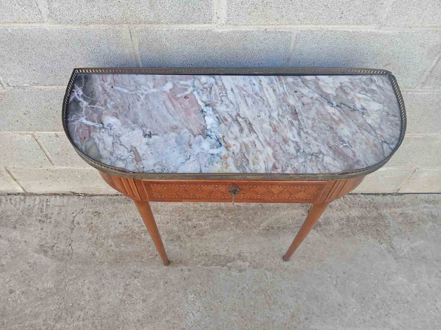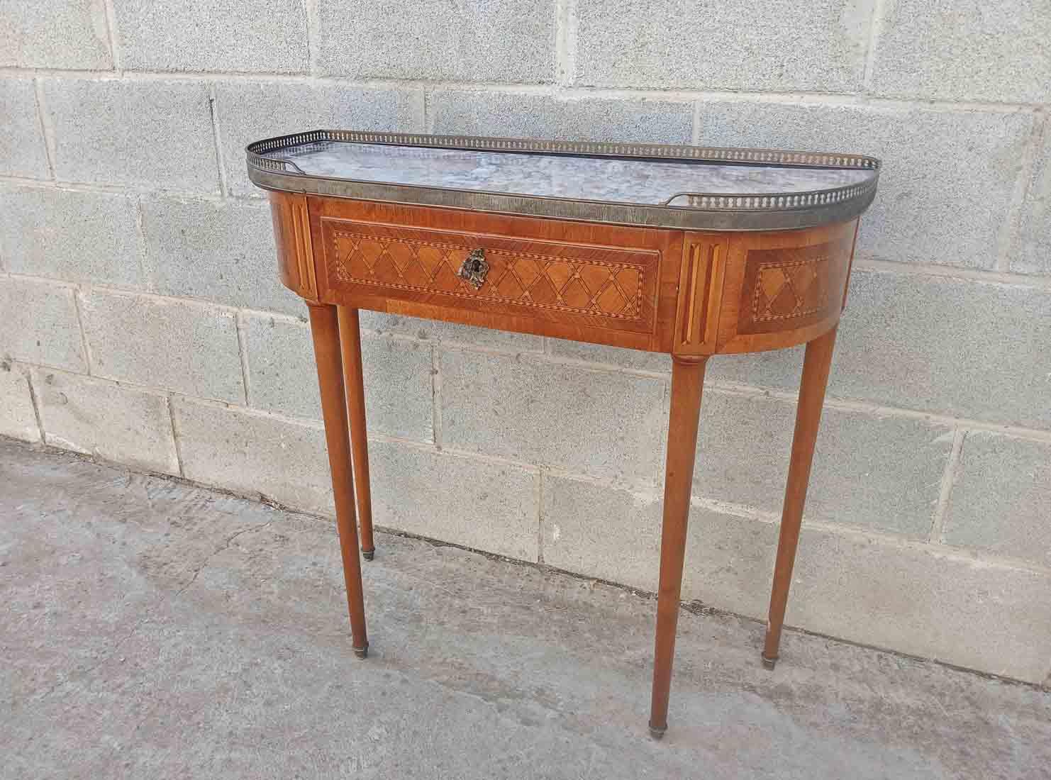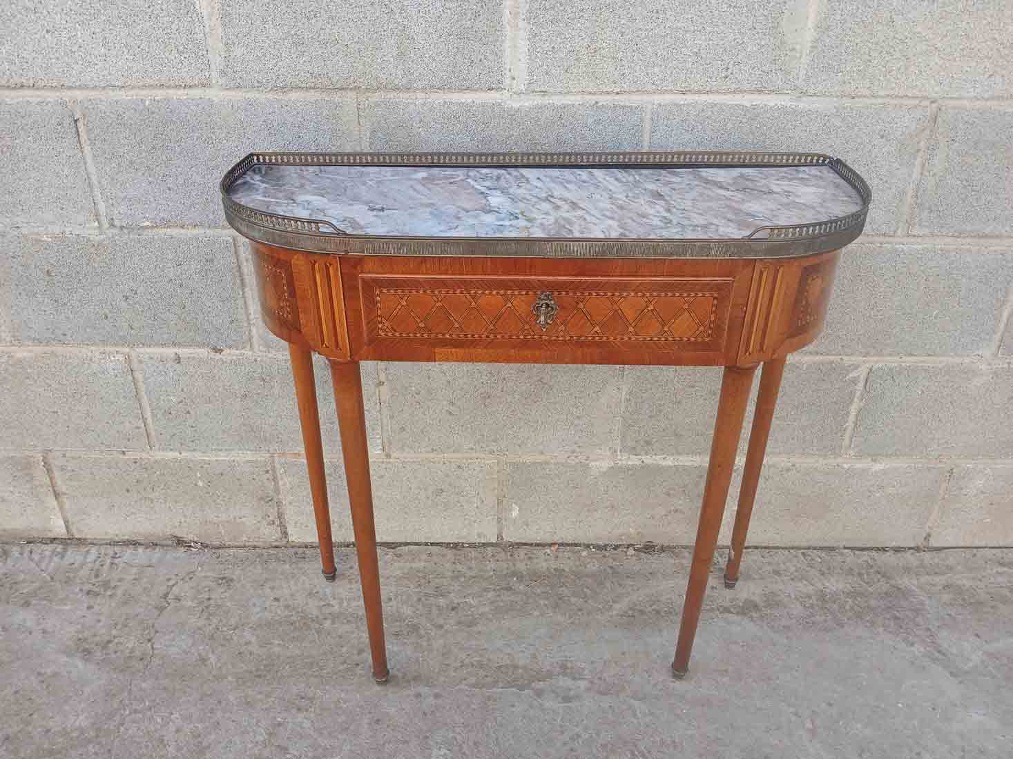 Pequeña Consola antigua estilo Luis XVI marquetería (78 cm). Mueble Consola antigua estilo inglés.