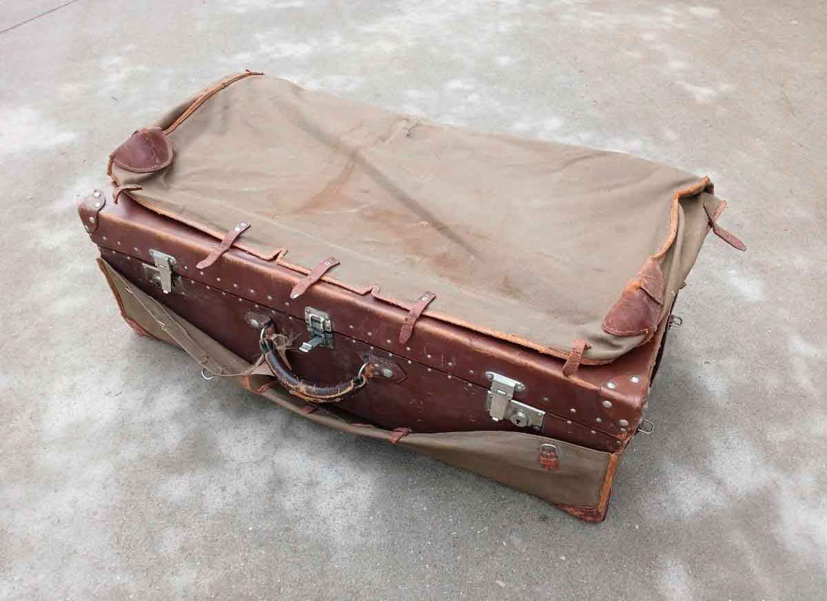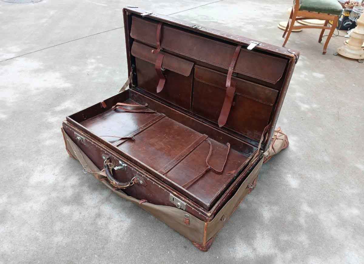 Rara Maleta antigua con compartimentos de cuero y forro lona verde. Maleta cuero antigua vintage.