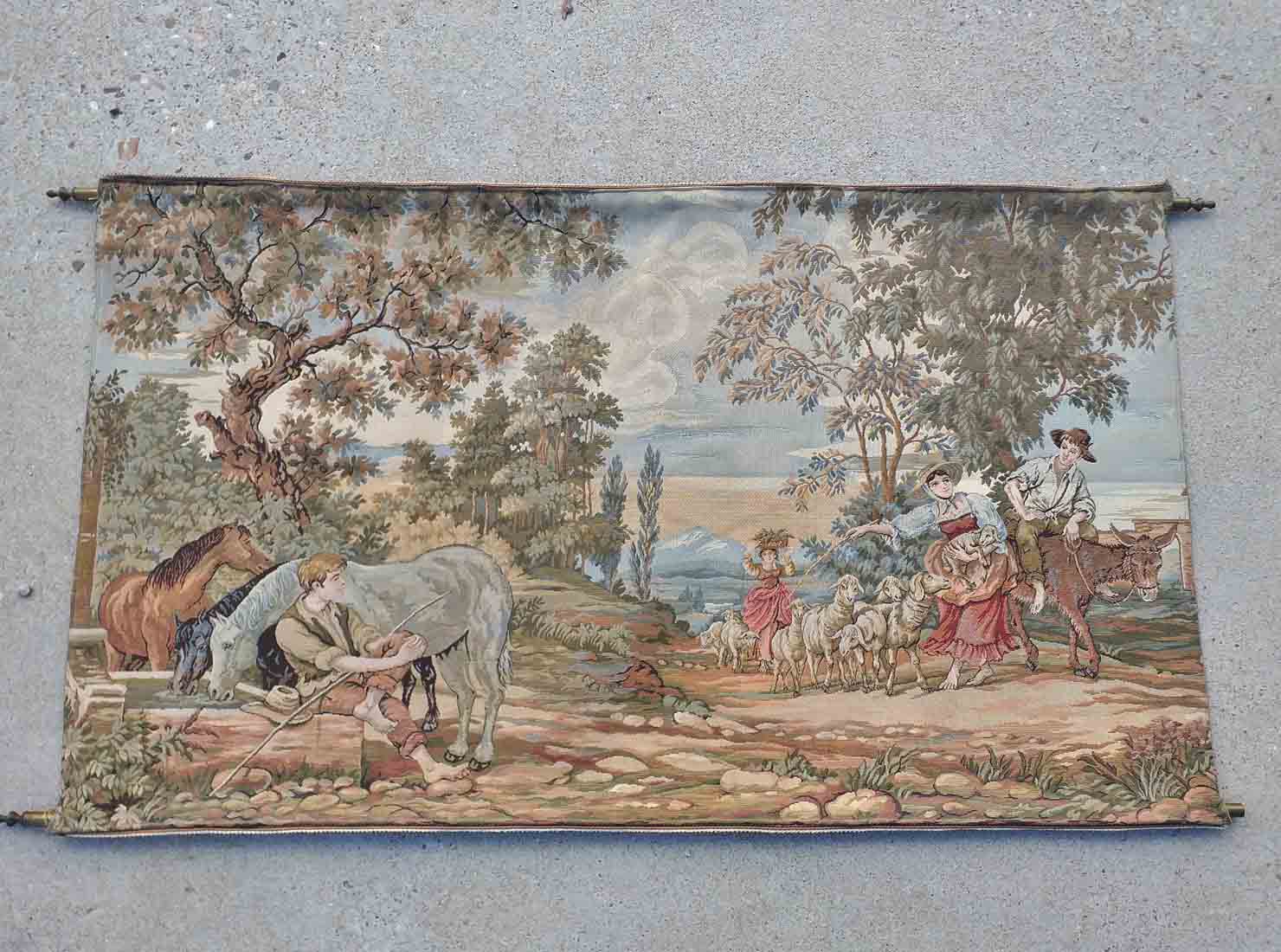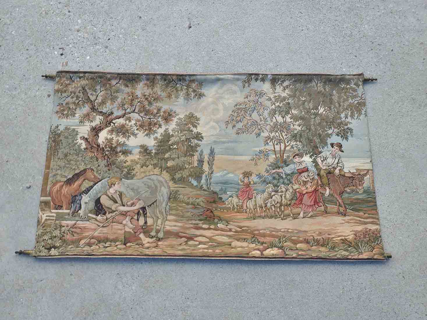 Tapiz antiguo motivo pastoril campestre amoroso.